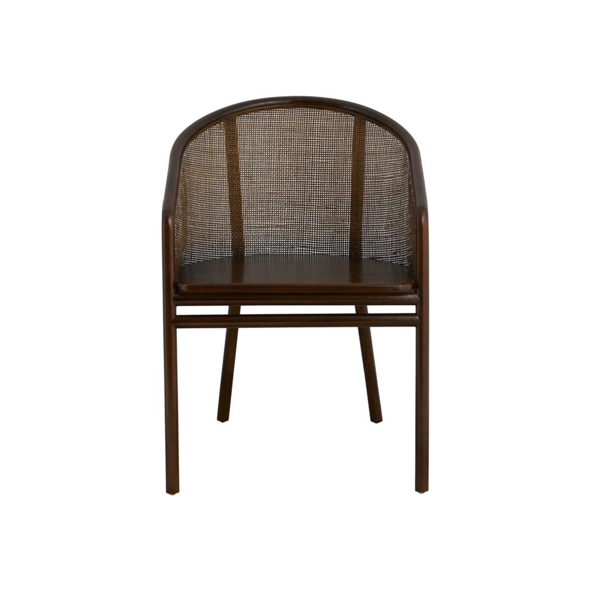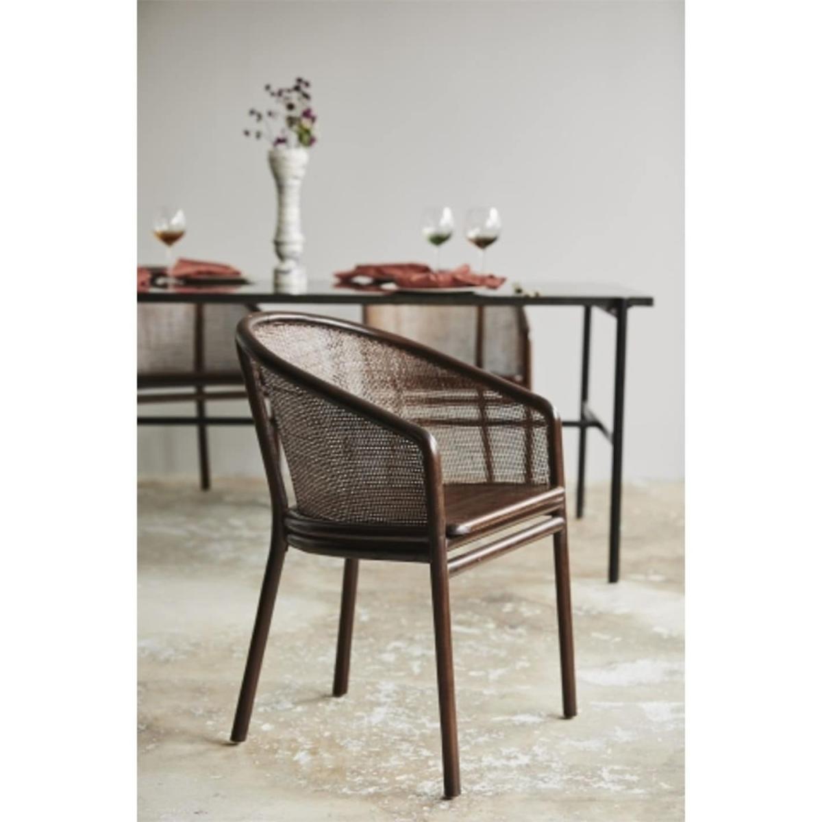 Make your dinning setting both sophisticated and functional with this elegant Mosso dining chair from Nordal, showcasing polished teak with a rattan back for comfort.