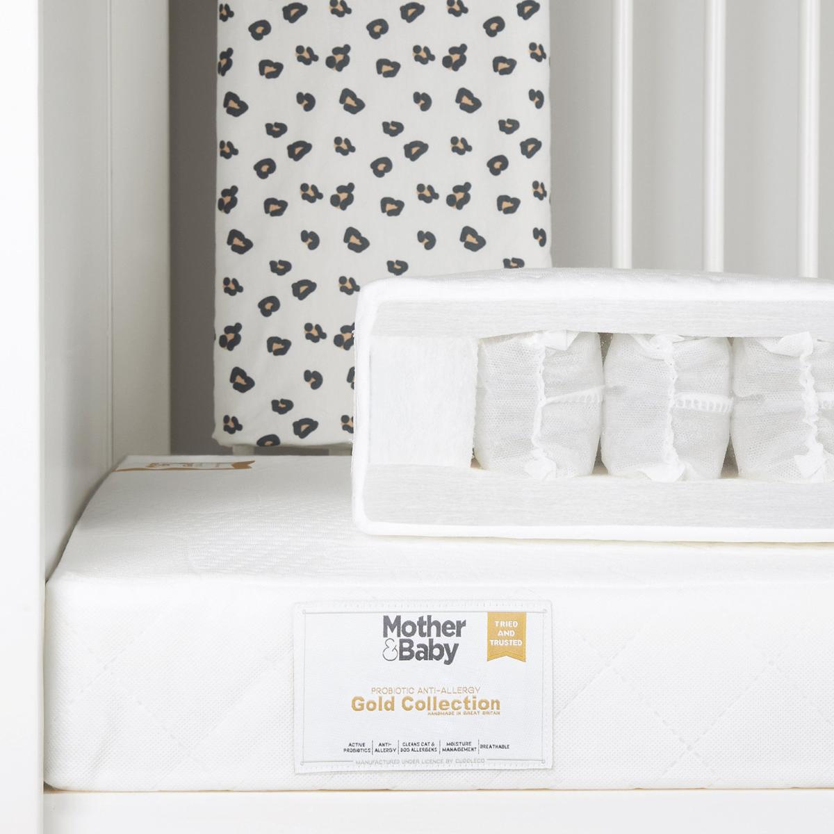 The Mother & Baby Gold Collection cot and cot bed mattresses, a cleaner, fresher, healthier sleep environment. Guaranteed. The White Gold Anti-allergy Pocket Sprung Mattress uses Purotex anti-allergy technology made from 100% natural and organic probiotics. Tests and scientific studies prove that Purotex improves allergy symptoms by reducing house dust mite allergens by 93.7%, cat hair allergens by 92.8% and dog hair allergens by 66.7%. Each mattress has a moveable waterproof membrane and all covers are removable and washable. Purotex probiotic 100% natural anti allergy protection. Tencel natural fibres for enhanced breathability and temperature control. Elimates 93.7% house dust mite allergens, Elimates 92.8% cat allergens, Elimates 66.7% dog allergens. Individual adaptable pocket springs for tailored support. Suitable for cots. Hypoallergenic. Anti-allergenic. Pocket sprung mattress. Cover: 55% polyester, 45% tencel. Removable washable cover. General information: Size L120, W60, D10cm. Manufacturer's 2 year guarantee.