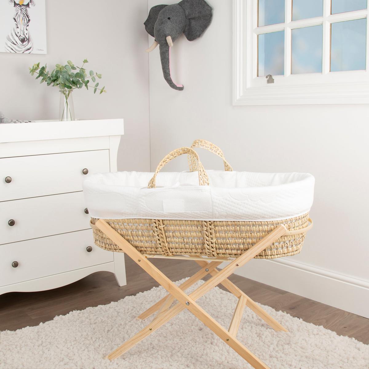 Mother&Baby Moses Basket with Cover & Mattress Light Brown/White