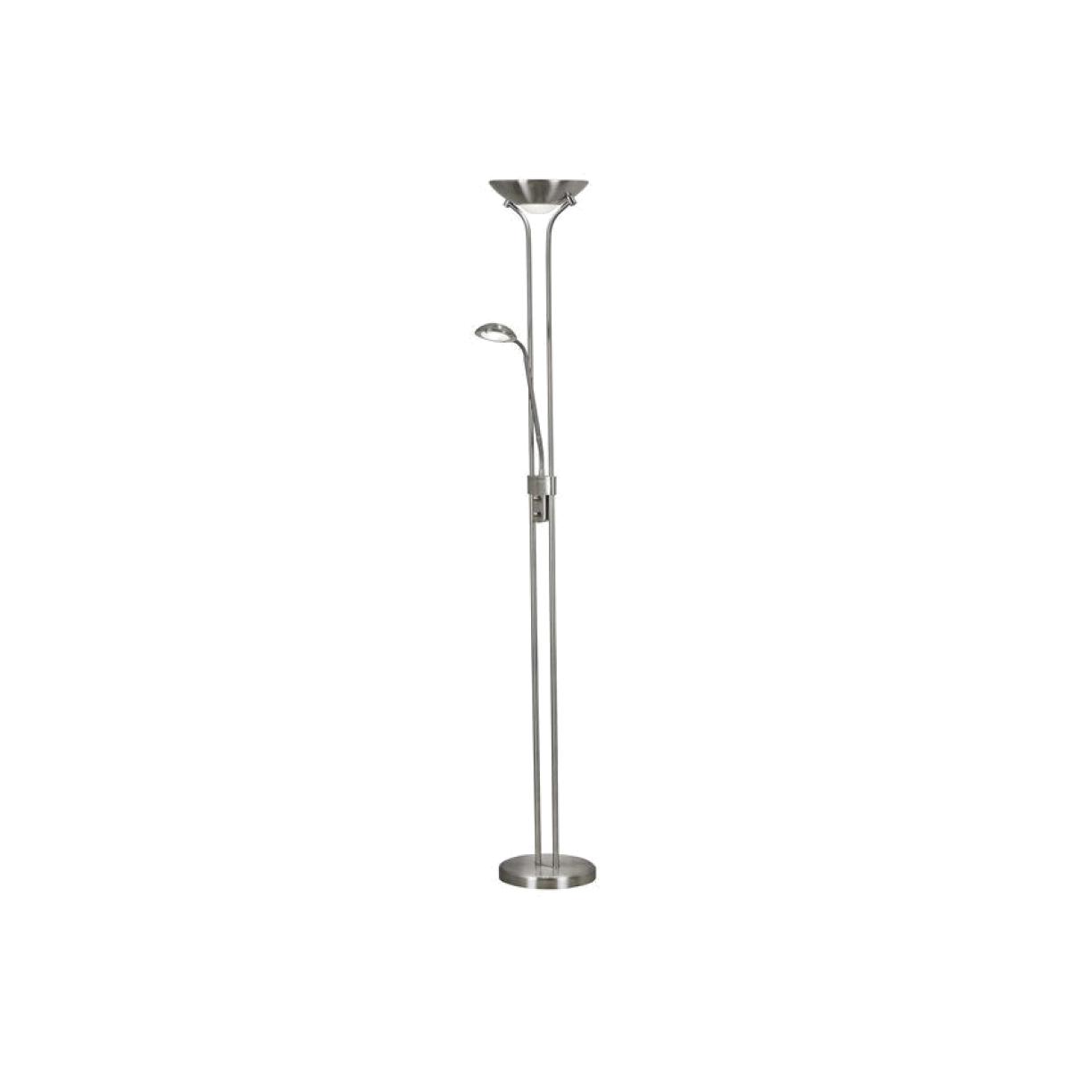 Provide a stytlish additional sourse of light with this Mother and Child floor lamp in a satin silver. The dual parts of the long slim body features two lights: the largest providing a spread of light and the smallest light is adjustable. Key Features: Uses a rotary double dimmer. LED Bulbs use up to 85% less energy and last up to 20 times longer than incandescent bulbs.