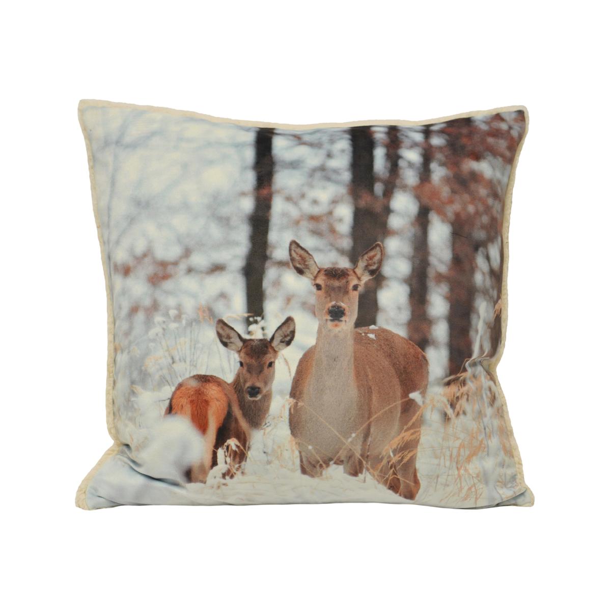 An adorable photographic print of a mother and her fawn, this wintery inspired cushion will transform your home into a festive wonderland.