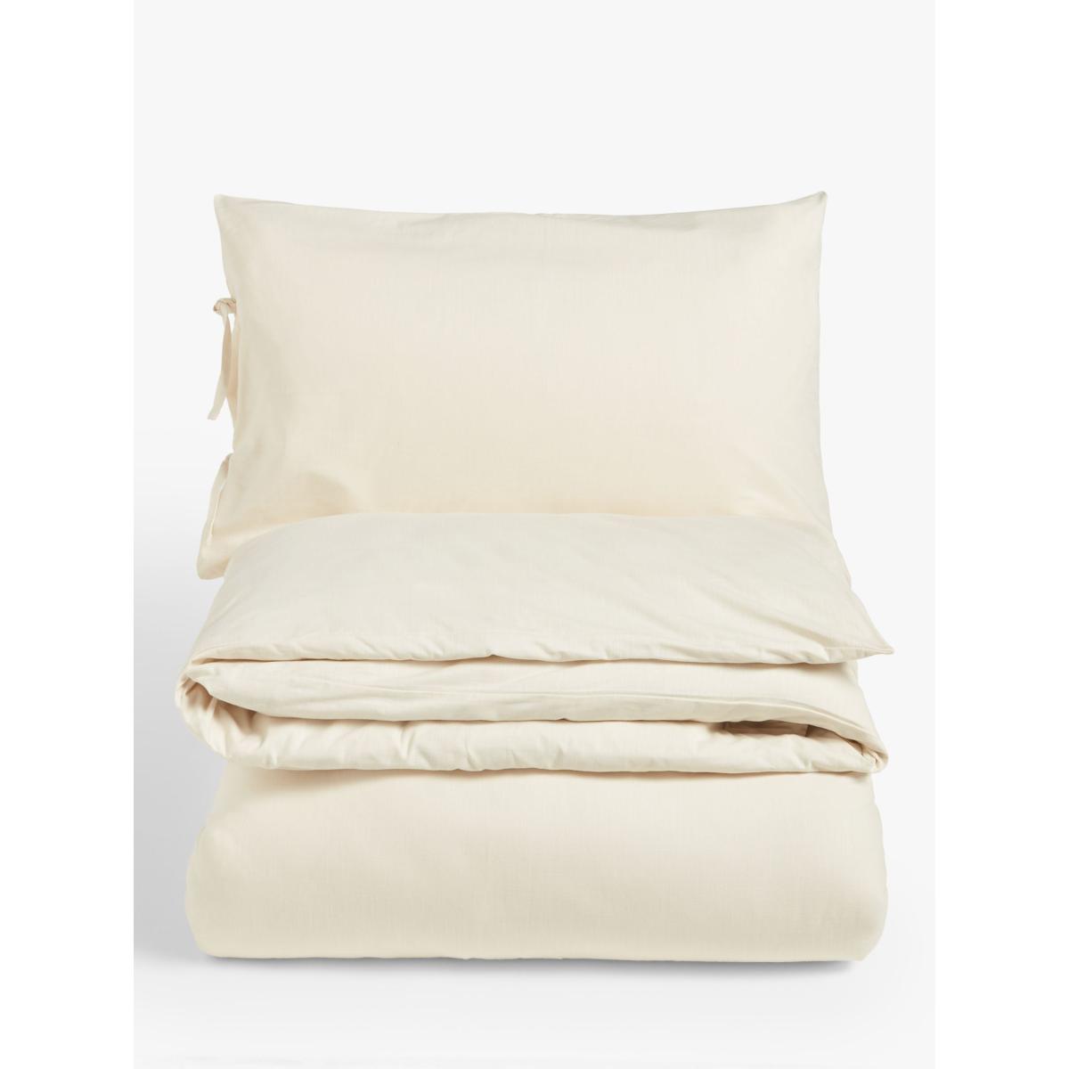 John Lewis & Partners + Mother of Pearl Discover an exclusive collaboration celebrating sustainability and creativity with purpose - contemporary design with attitude that doesn't cost the earth. This lightly textured plain bedding is made from organic cotton that's also Global Organic Textile Standard (GOTS) certified. This assures that high social and environmental standards of manufacture have been met across the entire textile supply chain. Each set contains 2x standard pillowcases. The packaging has been thoughtfully designed to have a second life. The fabric envelope is also a cushion cover perfectly designed to fit a 40 x 40 cm cushion pad. The card elements are fully recyclable. Bedding sizes To fit duvet/pillow size (cm) Standard pillowcase, L75 x W50cm Double duvet cover, L200 x W200cm King duvet cover, L220 x W225cm Super king duvet cover, L220 x W260cm
