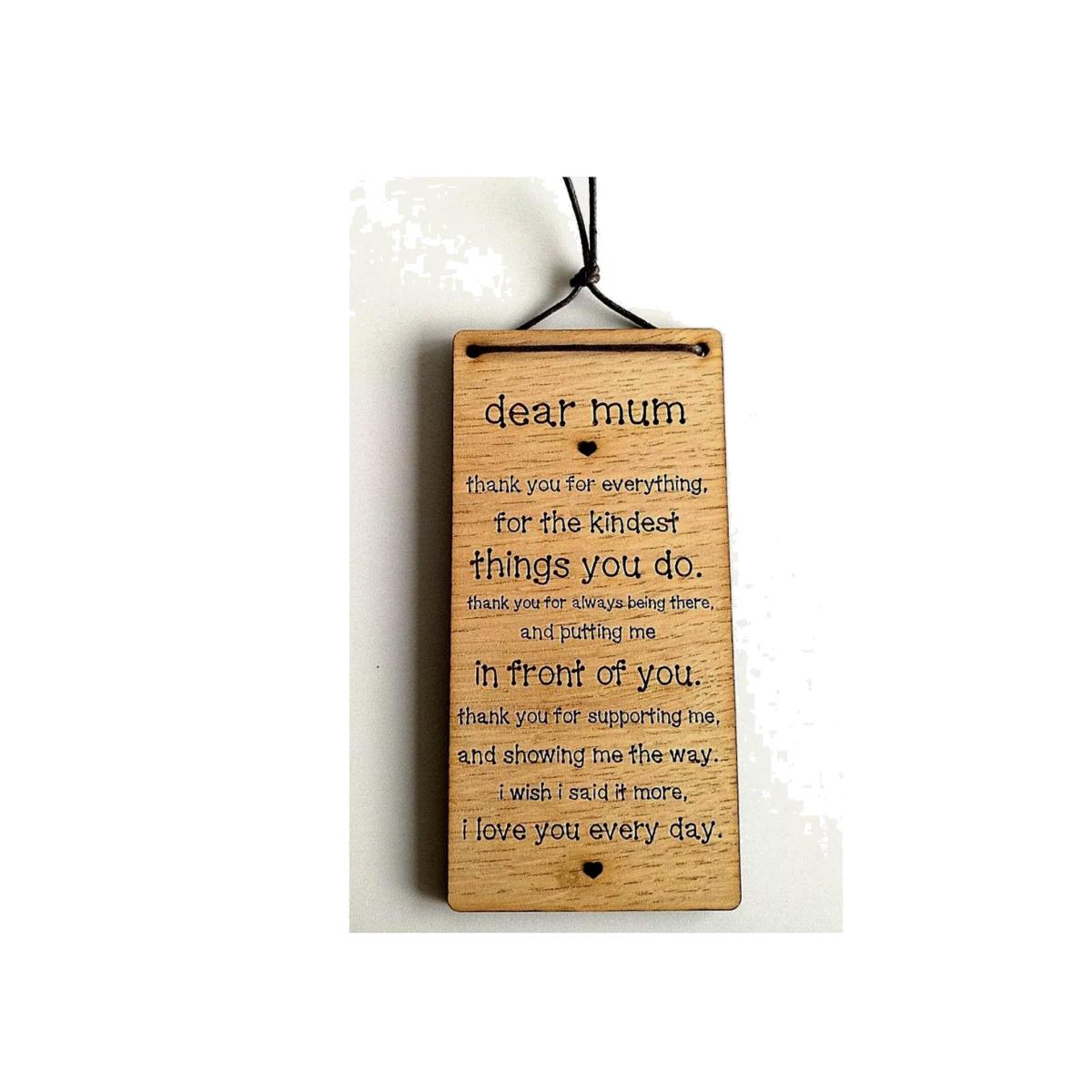Plaque Reads: ' Dear Mum, Thank you for everything, for the kindest things you do. Thank you for always being there, and putting me in front of you. Thank you for supporting me, and showing me the way. I wish I had said it more, I love you every day.'