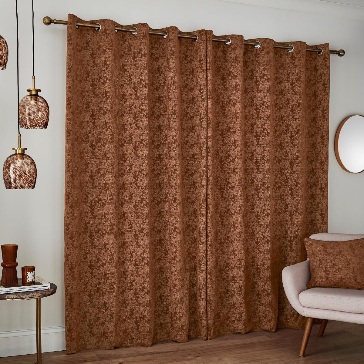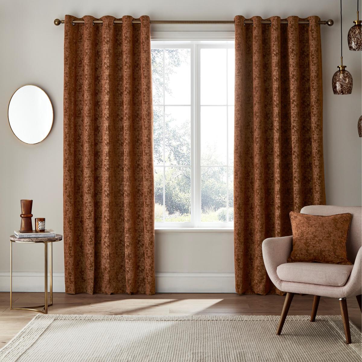 Mottled Chenille Rust Eyelet Curtains Orange