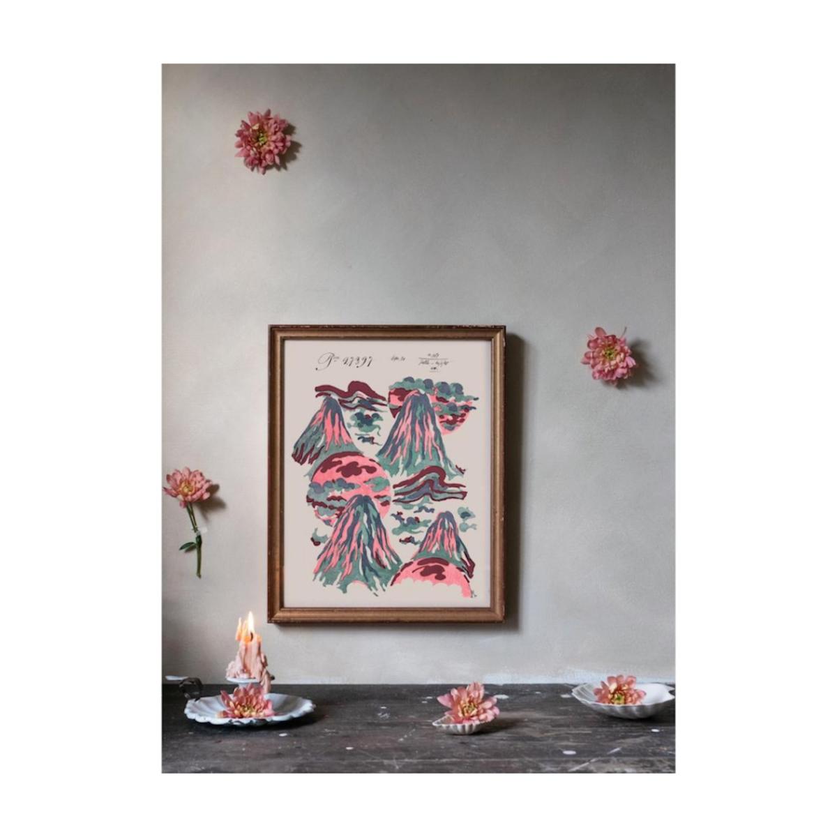 I think Mount Vesuvius works beautifully in both contemporary and eclectic interiors, adding a bold, artistic focal point. Its vibrant colours and dynamic illustration make it a great statement piece above a sofa or in a gallery wall setting. For styling, try pairing it with neutral or muted-toned surroundings to let the artwork stand out, or mix it with other vintage or travel-inspired pieces for a curated look. Practical tips include framing it in a simple, sleek frame to keep the focus on the artwork, and pairing it with ambient or task lighting to enhance its colours and details. It’s a versatile piece that injects personality and a touch of colour into any space.