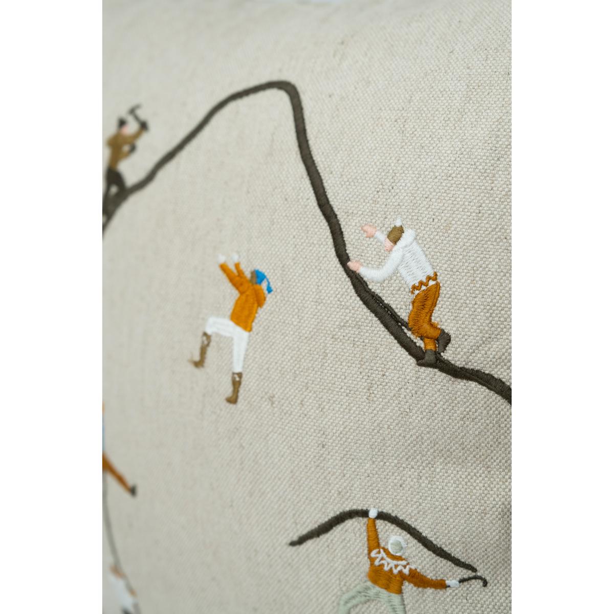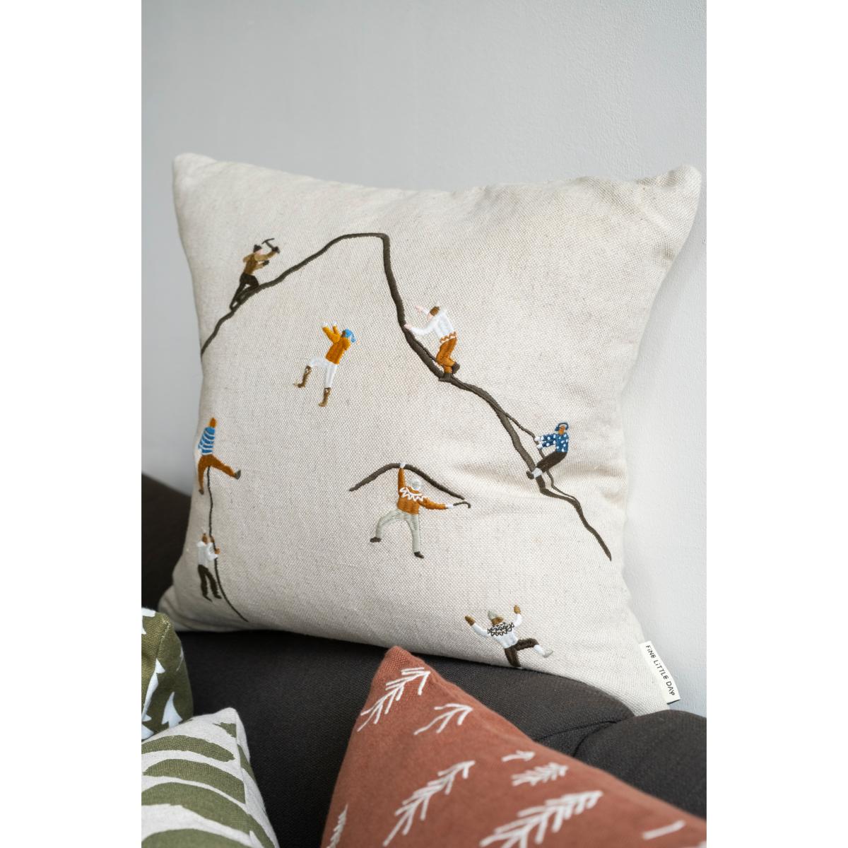 The mountain climbers pillow adds a playful yet stylish touch to a variety of interiors, especially those with a relaxed or whimsical vibe. I love how the natural tones make it versatile, pairing well with neutral or earthy colour schemes, but it can also add a fun accent to more colourful cushions. It works particularly well in cosy living rooms or bedrooms aiming for a casual, inviting atmosphere. For styling tips, consider layering it with textured throws or other patterned cushions to create a more curated look. It’s a great choice for adding interest and personality without overwhelming a space.