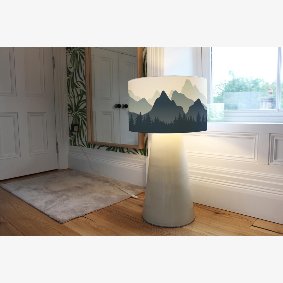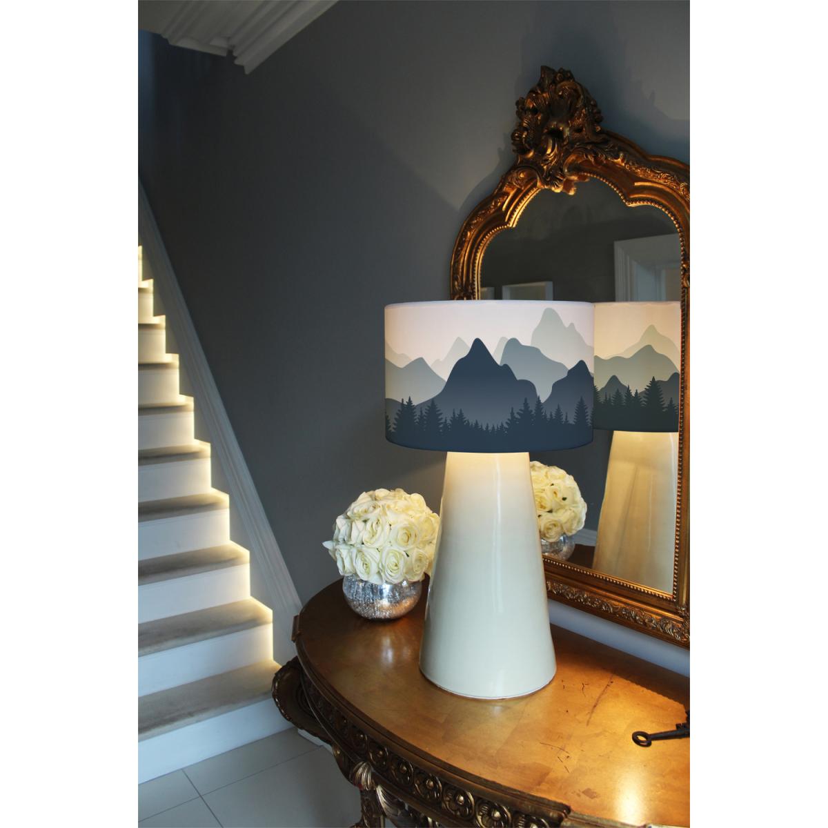 I love this mountain landscape lamp shade for adding a touch of colour and character to a variety of interiors. Its calming blue palette works particularly well in contemporary or coastal-inspired spaces, but it can also bring a playful yet elegant element to more eclectic or Scandinavian styles. The 40cm size makes it a great statement piece without overwhelming the room. For styling tips, try pairing it with neutral furnishings to let the shade stand out, or use complementary accessories that pick up the blue tones for a cohesive look. It’s versatile enough to work as a focal point in a living room corner or as a feature in a bedroom, adding both visual interest and ambient lighting.