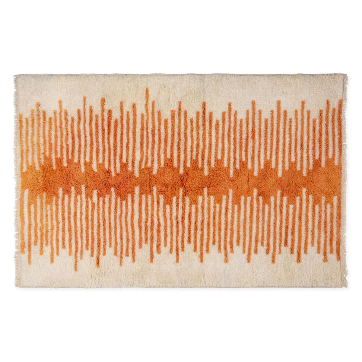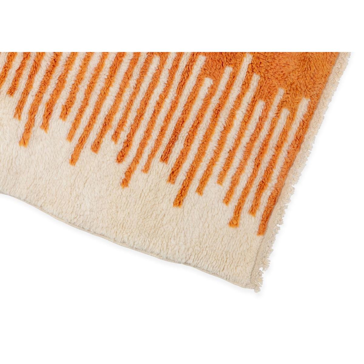 I love how this rug brings a subtle yet modern touch to many interiors. Its neutral tones with a pop of warm orange make it versatile enough to work in both contemporary and more eclectic schemes. It’s a great size for a statement piece in a small sitting room or as a focal point in a bedroom. Practical styling tips include layering it over a larger, neutral carpet for added texture, or using it to define a seating area in open-plan living spaces. Its pattern adds a lively but understated element, making it perfect for adding warmth and personality without overwhelming the space.