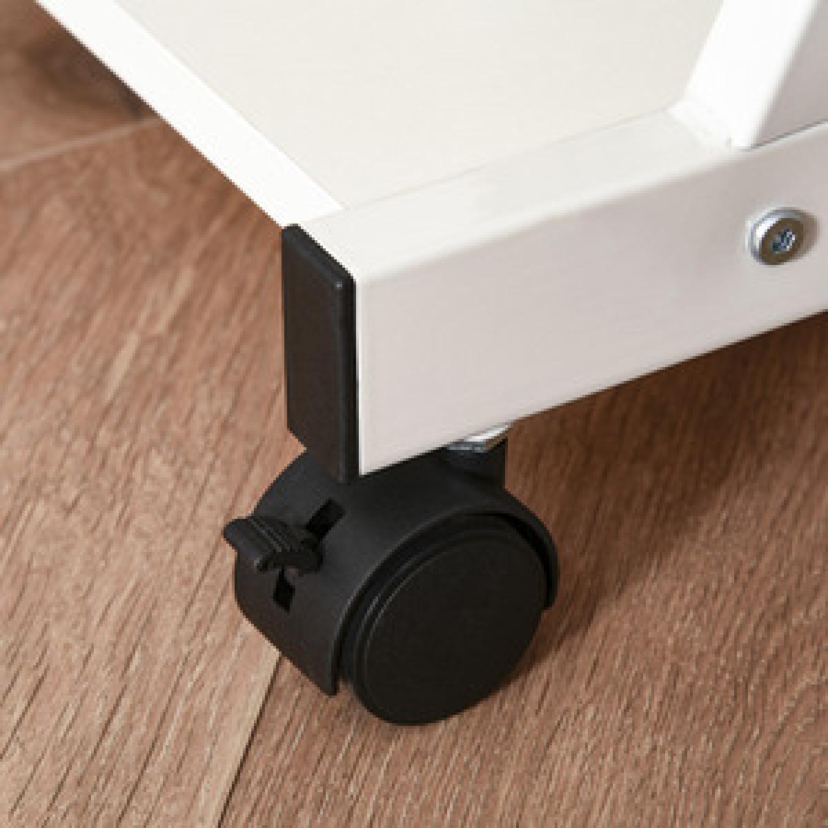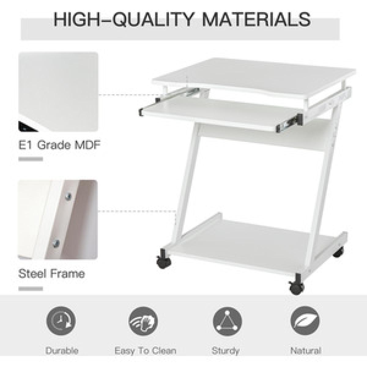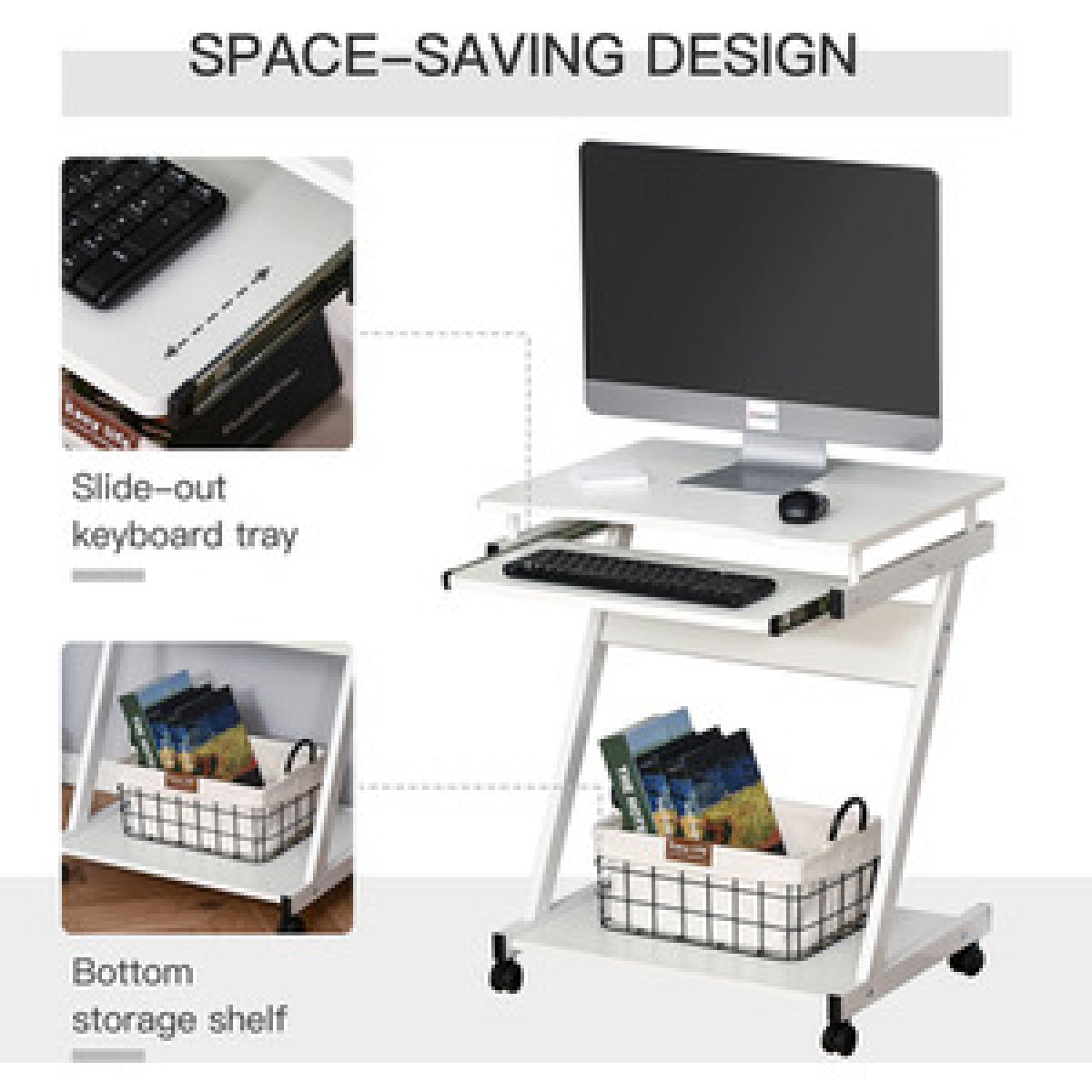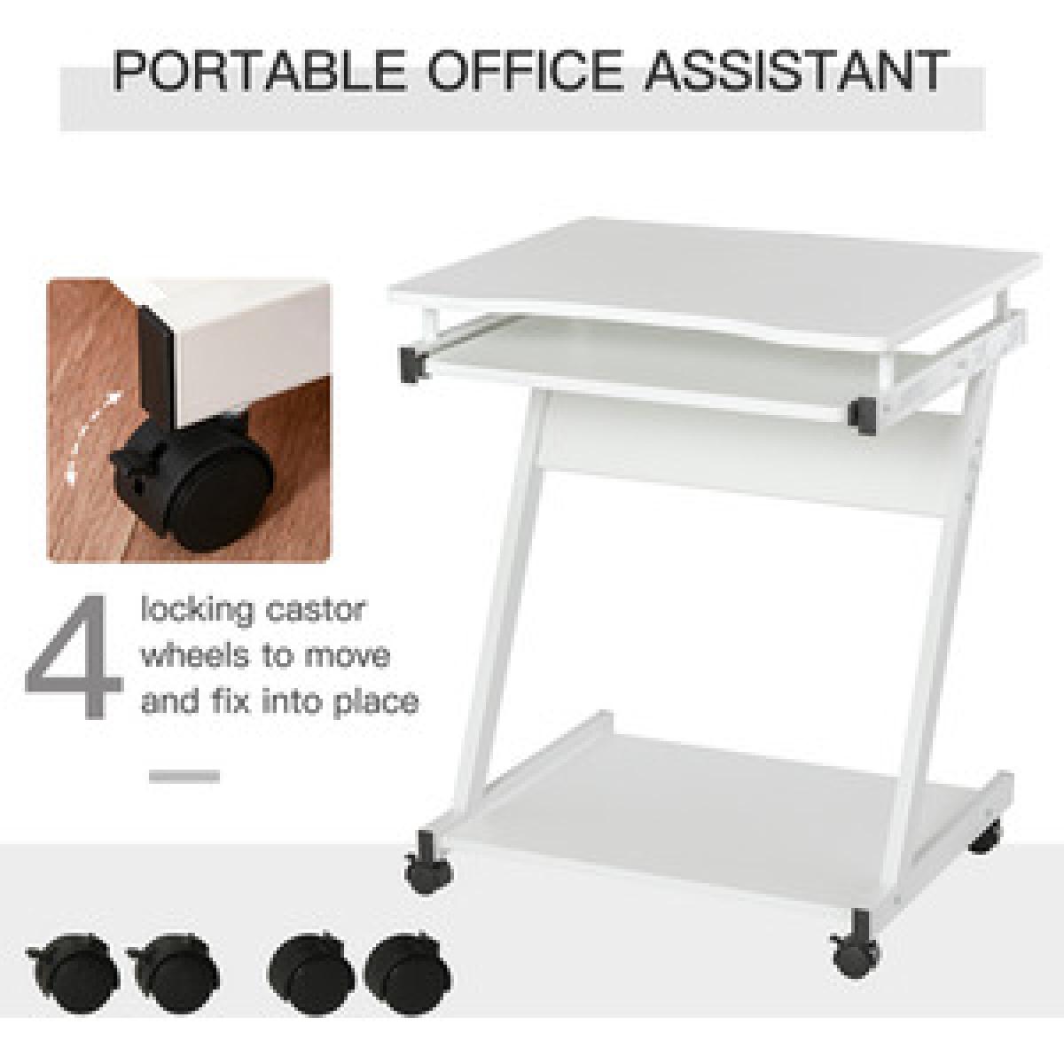 Keep your working times clean and clutter-free with this compact desk from HOMCOM. The frame is made from metal for a sturdy structure, crafted into a 'z' shape design which enables it to keep balanced and stable. It features an open tabletop, slide-out keyboard tray and bottom shelf, giving you plenty of room for working and handy storage space. Four locking wheels are placed on the bottom, making it easy to move around and keep stationary too. A modern piece perfect for all home and office spaces.