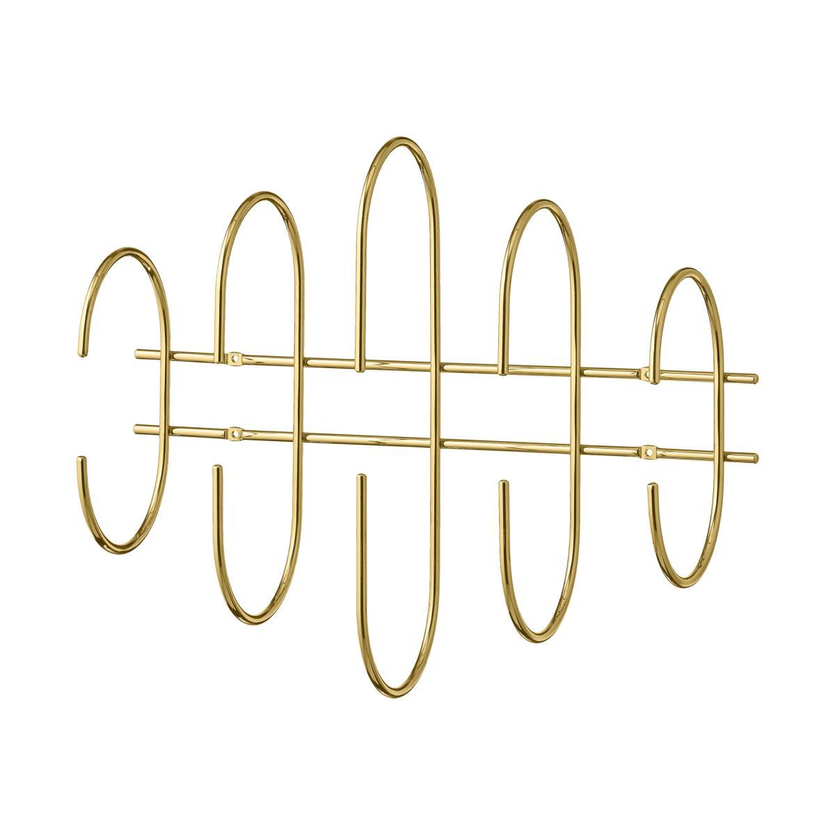 I love this coat rack for its sleek, modern design and versatile use of metallic gold that instantly elevates a space. It works particularly well in contemporary or minimalist interiors, where its clean lines and understated elegance can be showcased. Practical styling tips include placing it near an entryway for quick-access hooks or in a bedroom corner for hanging accessories or light outerwear. To keep the aesthetic neat, consider pairing it with matching metallic accessories or placing a decorative tray beneath it to gather keys and small items. Its compact size makes it ideal for smaller spaces while still providing ample hanging options, making it both functional and stylish.
