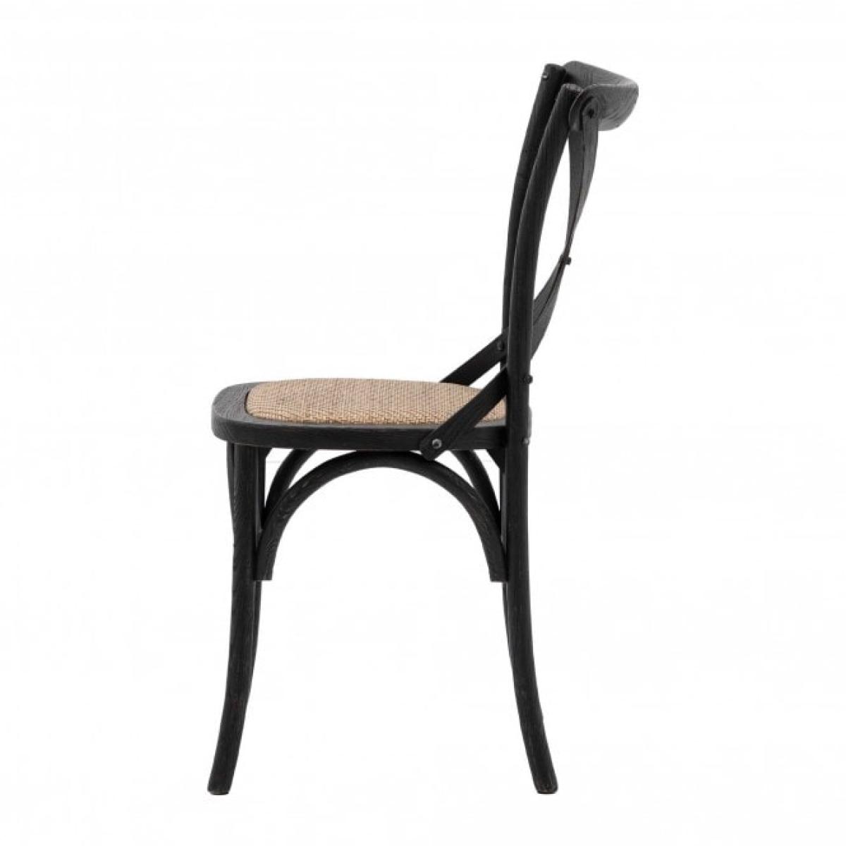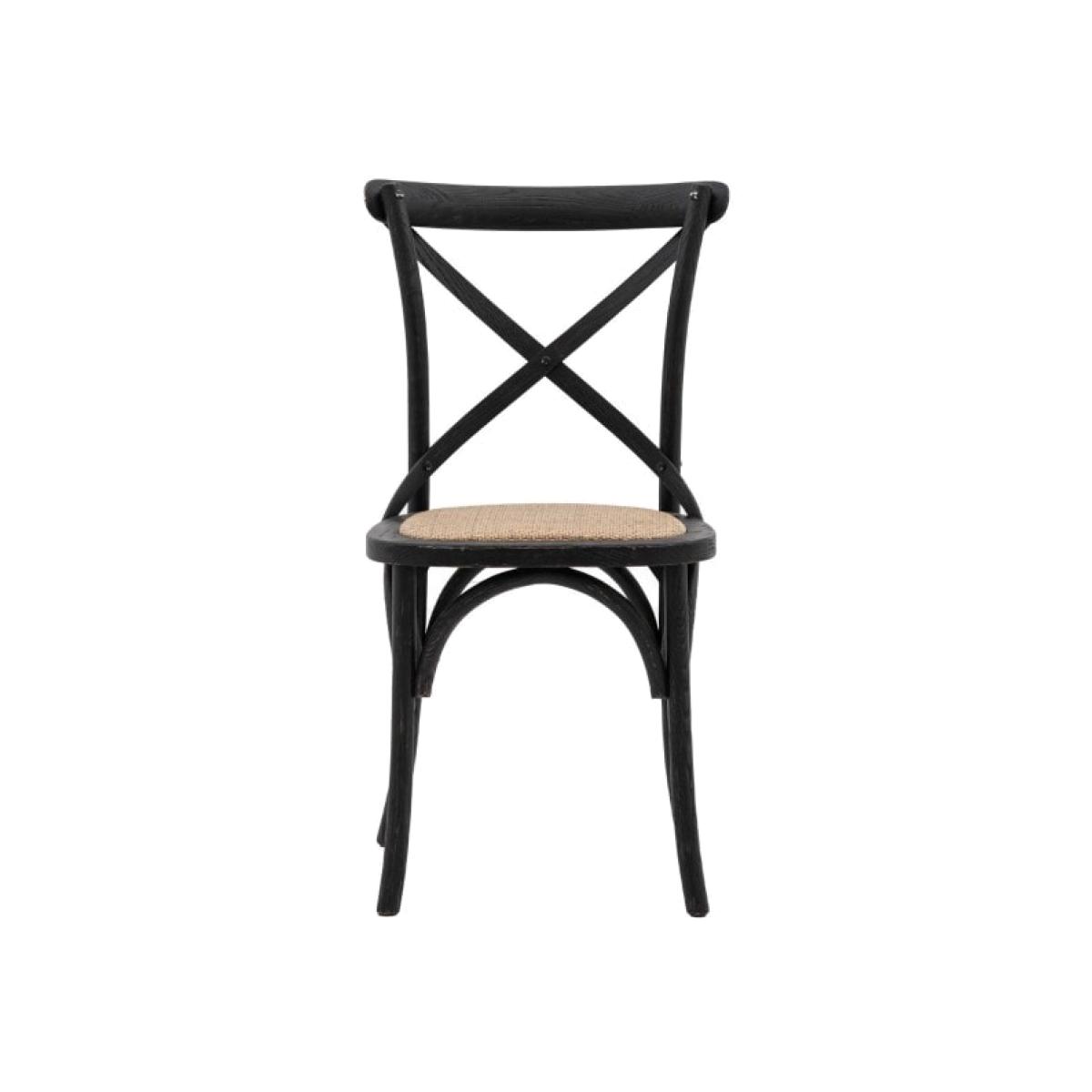 Set of 2 simple yet sophisticated cross back bistro style chairs. Bring the French cafe culture to your home with these elegant black chairs featuring solid rattan frames and hand woven rattan seats. Material:Oak / Plywood / Rattan. Colour/Finish: Black.