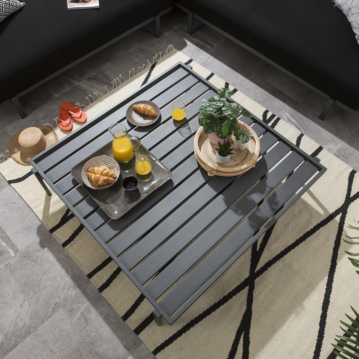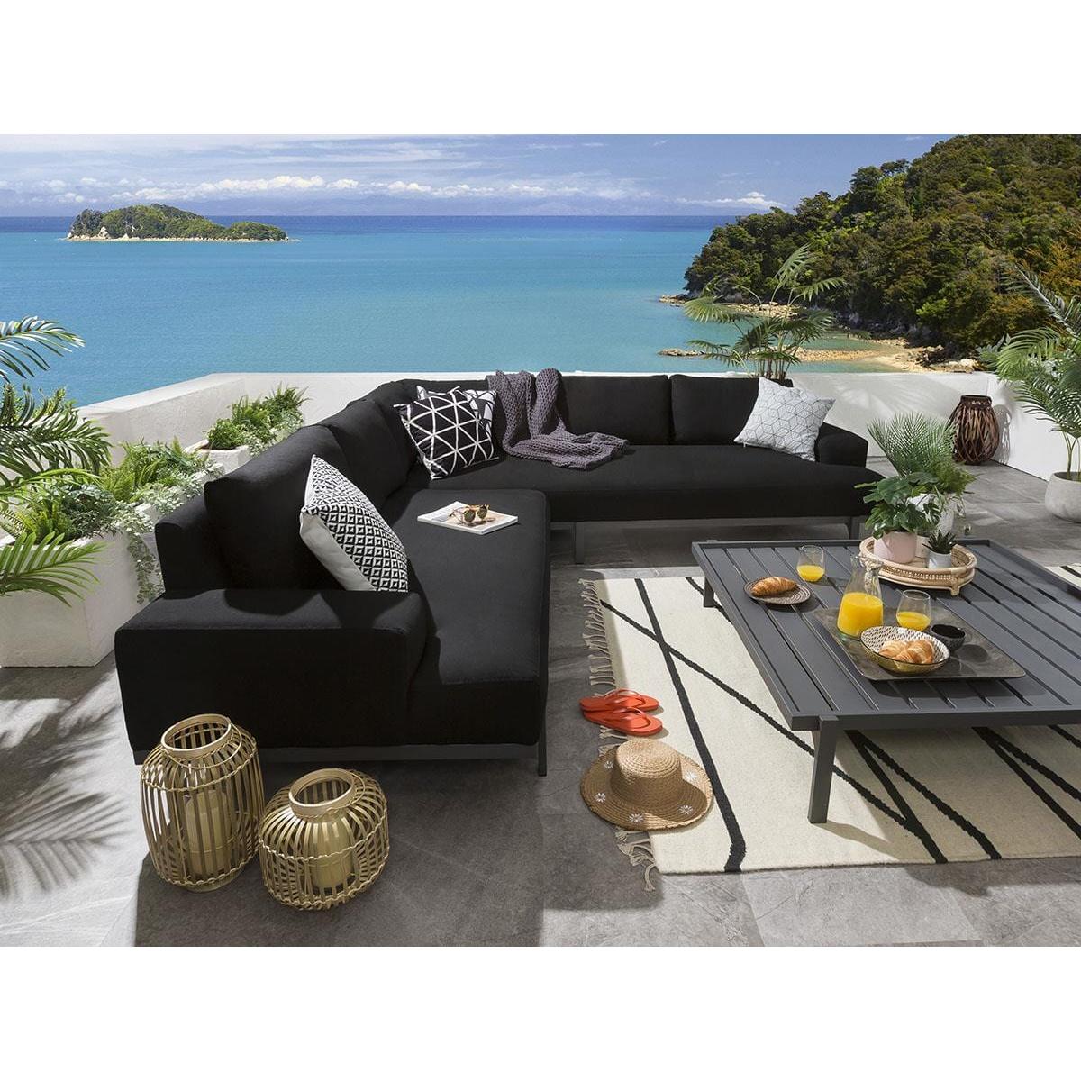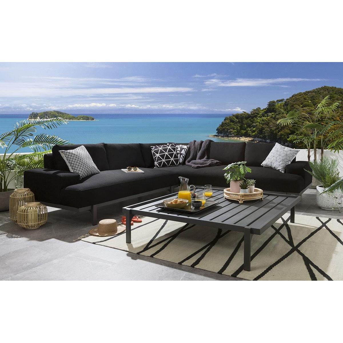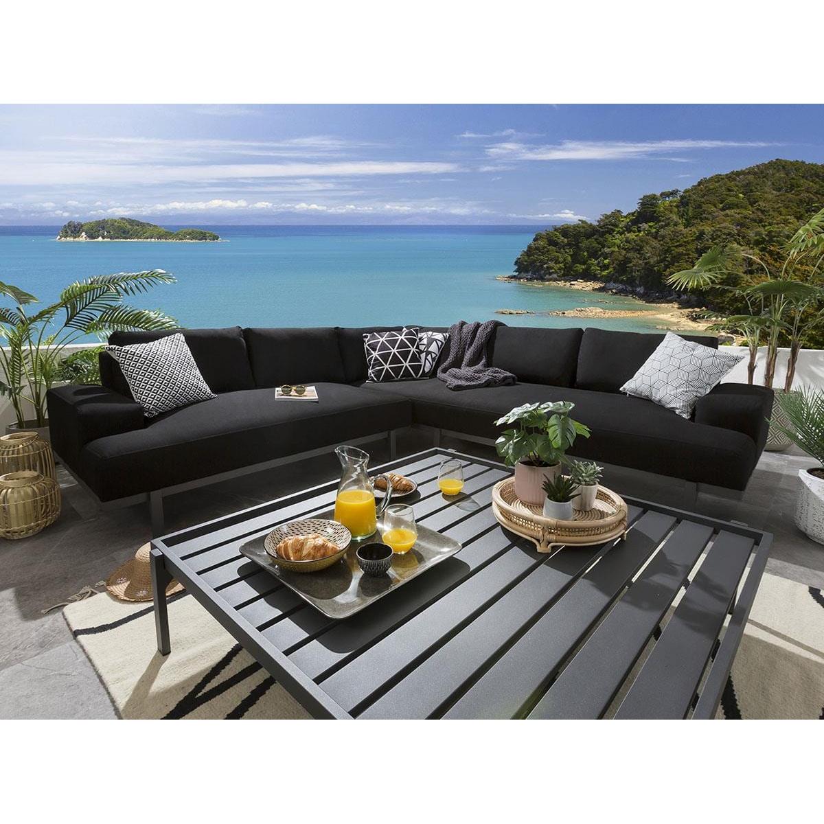 The MOY Premium Sunbrella Garden Sofa Set by Quatropi is a 5 seater outdoor sofa with a coffee table. This sofa offers unique options for anyone aspiring to have a contemporary garden. The sofa features metal legs that express a modern edge and raise the sofa to an extremely comfortable height. The sofa arms blend modern open-ended designs with traditional arms - especially designed to open up the sofa, whilst providing something to lean on, and on balance, creating a sofa that everyone will love. Relax and enjoy the great outdoors from the comfort of the MOY premium garden corner sofa set by Quatropi. There's nothing quite like spending quality time in your own garden, so it's little wonder that this luxury garden sofa set is so popular. The premium Sunbrella garden collection by Quatropi is an inspiring range designed to make you feel at home in your garden with a substantial modern flair that encompasses everything we love about contemporary furniture, all designed and produced to exact standards. Quatropi Sunbrella outdoor furniture is crafted for life, made for all seasons, and built to last. Built on a strong grey aluminium frame, make the most of your outdoor space with a carefully selected a Quatropi aluminium garden furniture set. Perfect for even the most strenuous weather conditions, with specialist water and stain resistant Sunbrella fabric. Stylish and classic, aluminium is a leading choice for garden furniture and comes in many different styles, paints and stains. All of the sofa materials are expertly selected to ensure the sofa retains its plushness, including the sumptuously thick high-density foam base cushions and snug hollow-fibre wadding filled back cushions. The cushions are upholstered in a premium Sunbrella black fabric - part of the unique designer range of garden patio furniture exclusive to Quatropi. The fabric provides unmatched weather and UV resistance. The design on the table, including the top, ties in perfectly with the overall sofa set aesthetic. Ongoing maintenance of the furniture set and table is easy, the frame and cushions can easily be cleaned with warm soapy water. Welcome in the beautiful spring and summer months with a gorgeous premium garden set - the quintessential option for relaxing with family and friends. This sofa offers a spacious and comfortable option for your back garden or outdoor space. Spread the cost our with interest-free finance options. Minimum spend applies. W261cm D260cm H68cm Sunbrella Outdoor Fabric Premium Outdoor Fabric