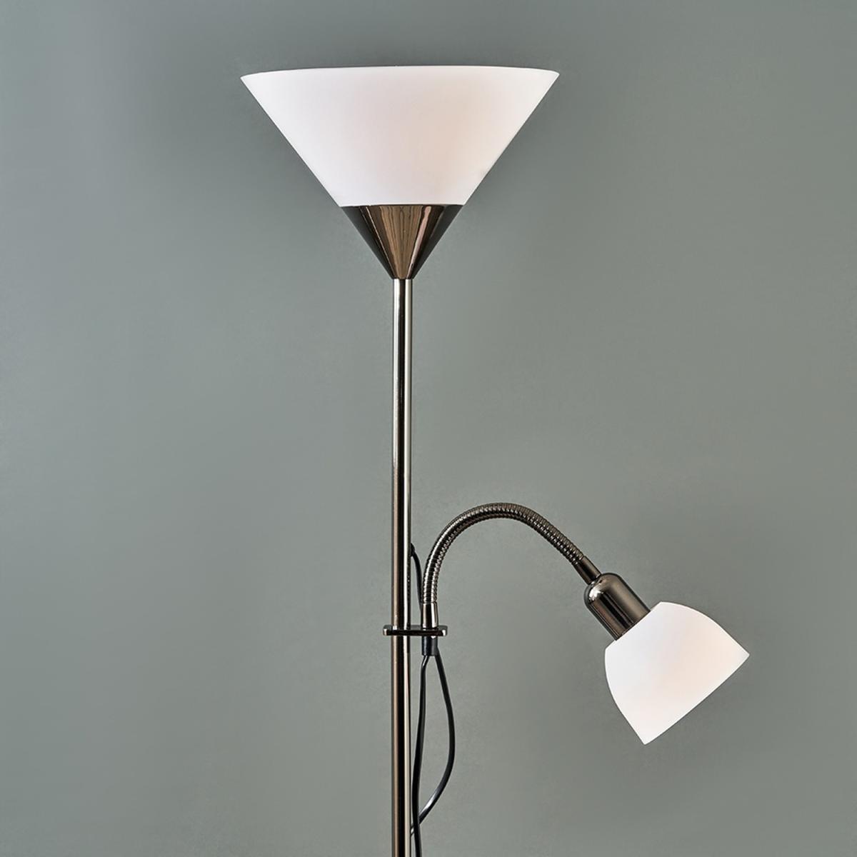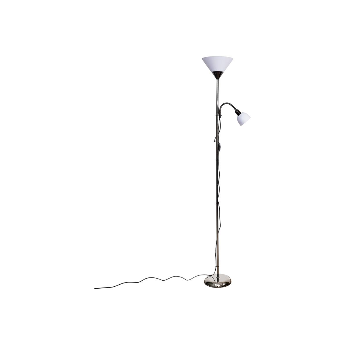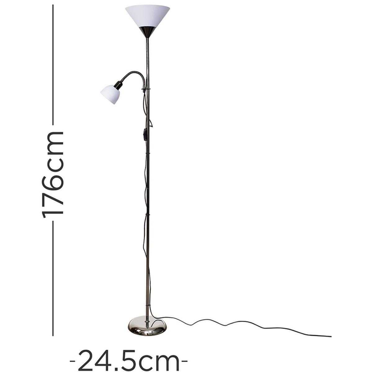 This black brushed chrome floor lamp with its classic parent uplighter child spotlight design is a must for any modern home. the uplighter is perfect for lighting up dark corner while the spot light is perfect for writing, reading, studying, hobbies, crafts or simply creating a relaxing and comforting ambience in the home, its dimmable bulb allows you to change the light according to your mood. Perfect for placing in living rooms, bedrooms, hallways or in the office. Stylish and contemporary, this flexible floor lamp is ideal for computer use at home or in the office, after school work or as a bedroom lamp for reading in bed.