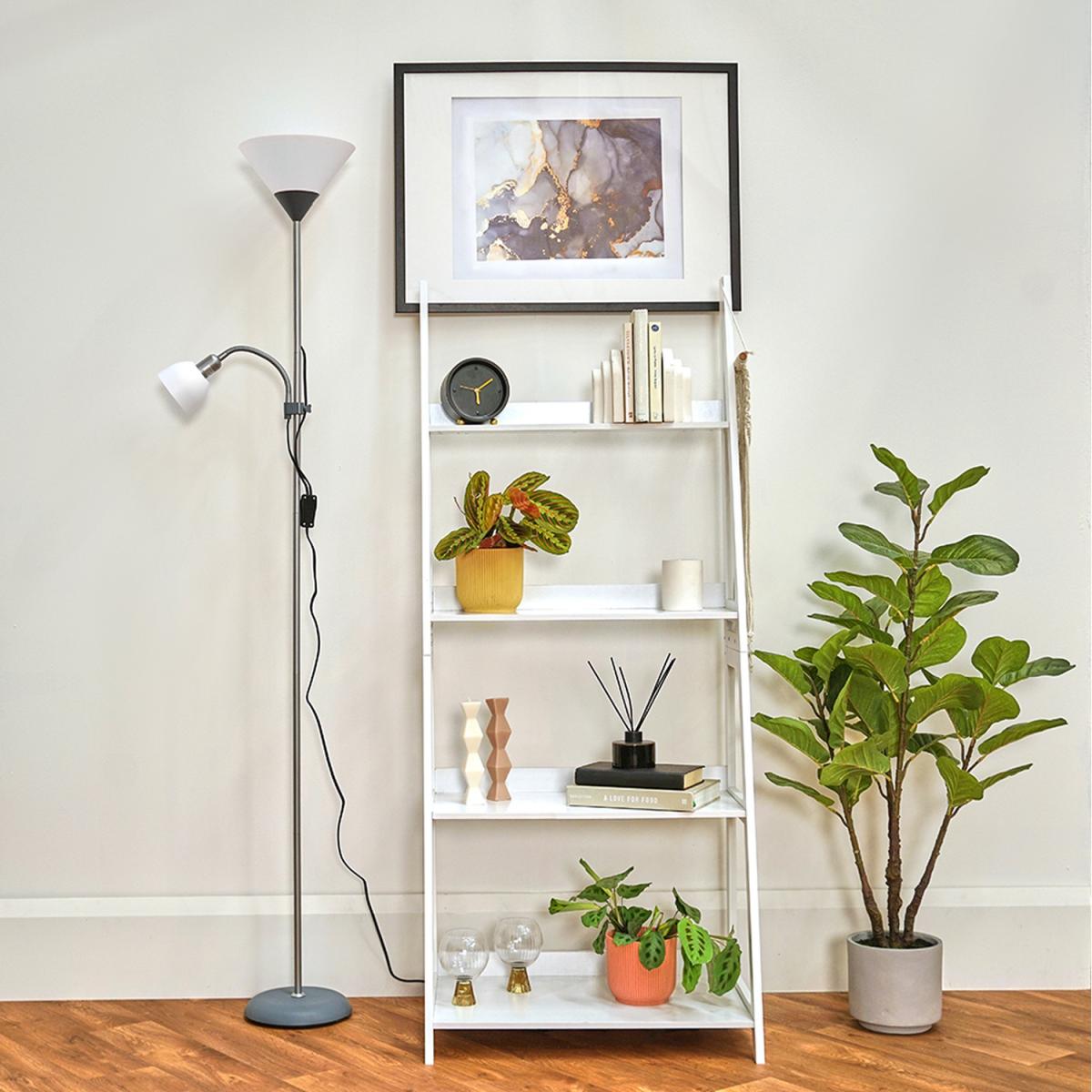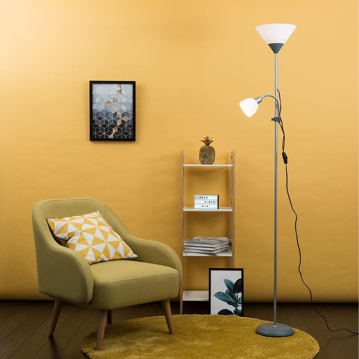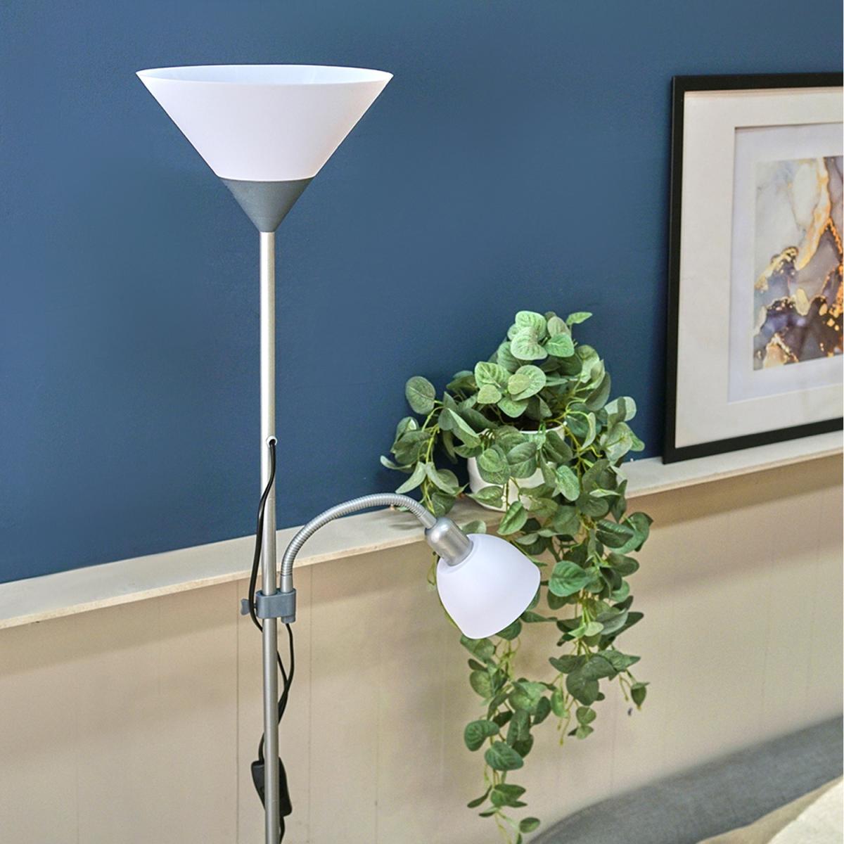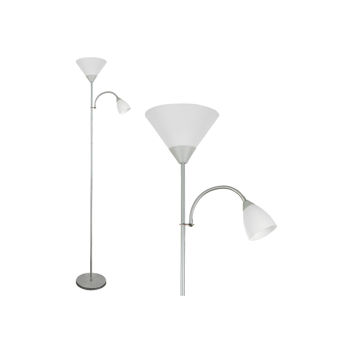 This metallic silver floor lamp with its classic parent uplighter child spotlight design is a must for any modern home. Great for homework, writing, reading, studying, hobbies, crafts or simply creating a relaxing and comforting ambience in the home. Perfect for placing in living rooms, bedrooms, hallways or in the office. Stylish and contemporary, this flexible floor lamp is ideal for computer use at home or in the office, after school work or as a bedroom lamp for reading in bed.