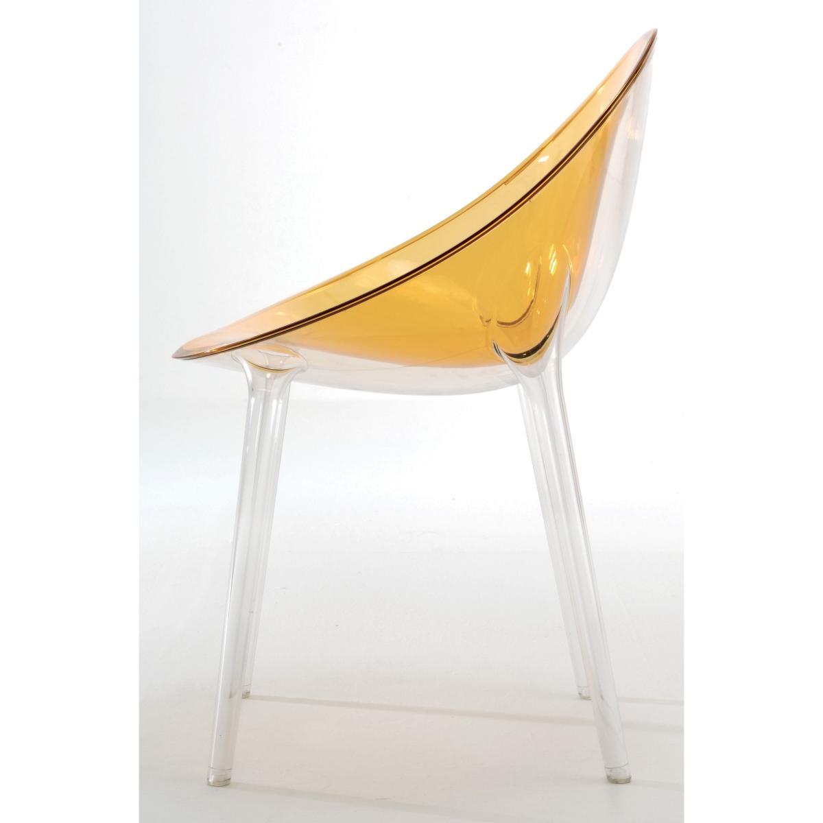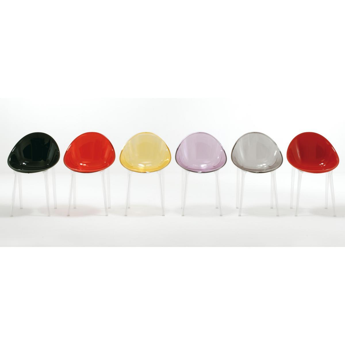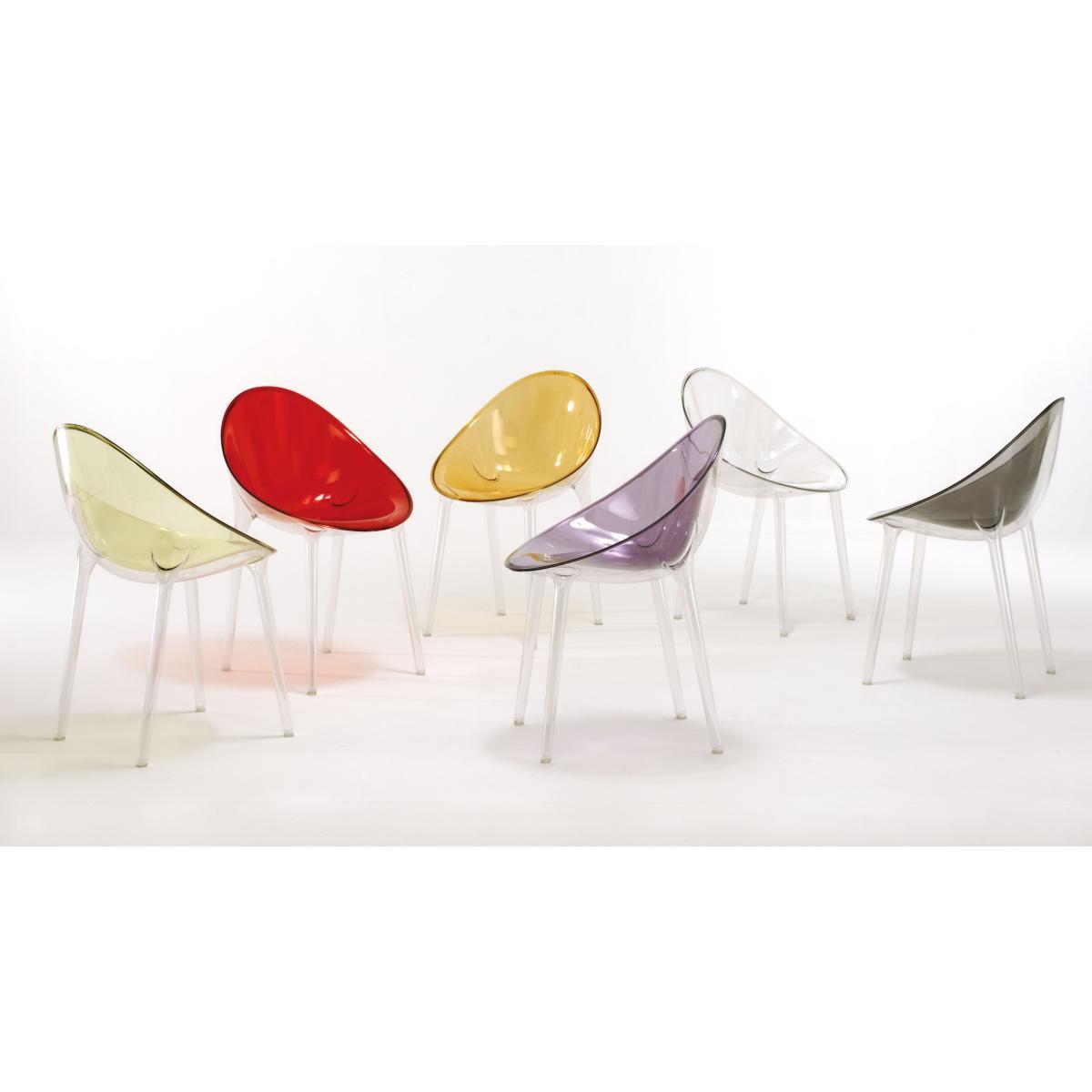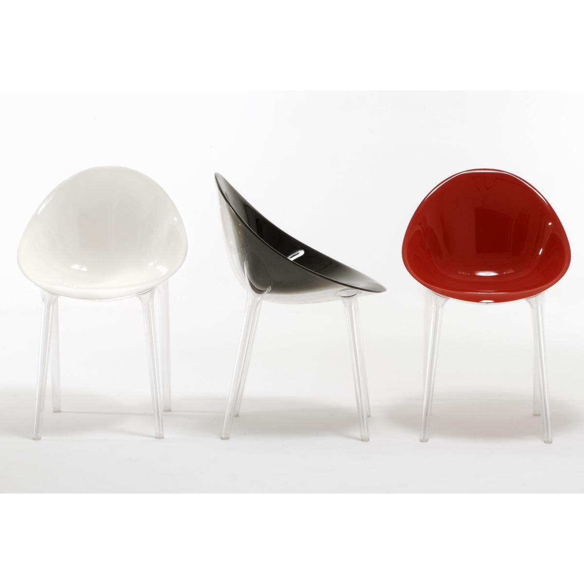 A most exciting new chair design by the king of chairs himself - Philippe Starck. Pushing the boundaries of production - Mr Impossible - the chair they thought impossible to make has now become a reality, thanks to the technical innovation at Italian Plastic manufacturer Kartell, who have spent years developing and realizing the furniture fantasies of design guru Philippe Starck. A highly sophisticated processing technique that welds together two polycarbonate shells - the transparent leg structure and the seat cup - creates a physically strong structure with a visually delicate and interesting, bi-colour, three dimensional effect.