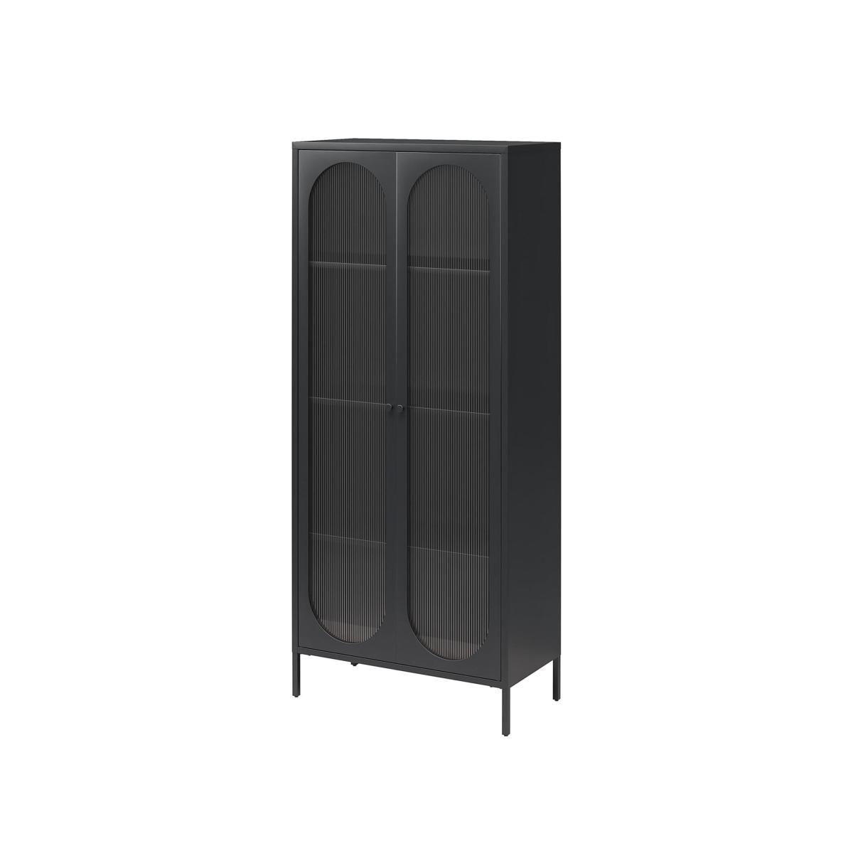 In need of a seriously cute accent cabinet to both modernize and organize your space? The Luna Collection is the perfect combination of storage with an elevated design that can solve your organization and style needs in one piece! The resilient metal construction delivers in terms of versatility while the oval-shaped fluted glass doors add a distinguished charm to this dashing decorative cabinet. The Tall 2-Door Accent Cabinet provides four spacious shelves (three adjustable) so you can instantly streamline and organize your living space in a flash. Add style and much-needed storage to your living room, kitchen, den, bathroom, guest room or any room in the home! Perfect for your aesthetic: Minimal, Vintage-Eclectic, Boho.