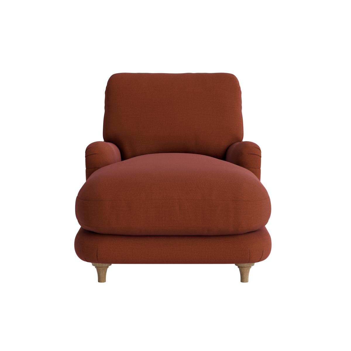 I love the Mrs Jonesy armchair chaise for its inviting, relaxed silhouette which works particularly well in cosy living areas or casual reading corners. Its warm, earthy tone makes it versatile and easy to pair with neutral palettes or layered textures. For styling tips, consider pairing it with a soft throw and decorative cushions to enhance its comfort and character. It lends itself well to both traditional and contemporary interiors-think pairing with vintage wood furniture or sleek metallic accents. Practical advice includes positioning it near a window for sunlight or near a side table for convenience, making it both a stylish and functional piece in your living space.