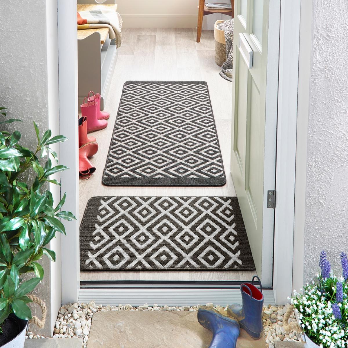 Manufactured in the UK this extremely hard wearing doormat is washable at 30 degrees C. Perfect to put by your front door to welcome people into your home, the dense nylon pile traps dirt, dust and mud with a non-slip rubber backing. This modern vibrant printed design is long lasting, easy to clean and fast drying. Being naturally stain resistant to stains keeping it looking fresh and new all the time.