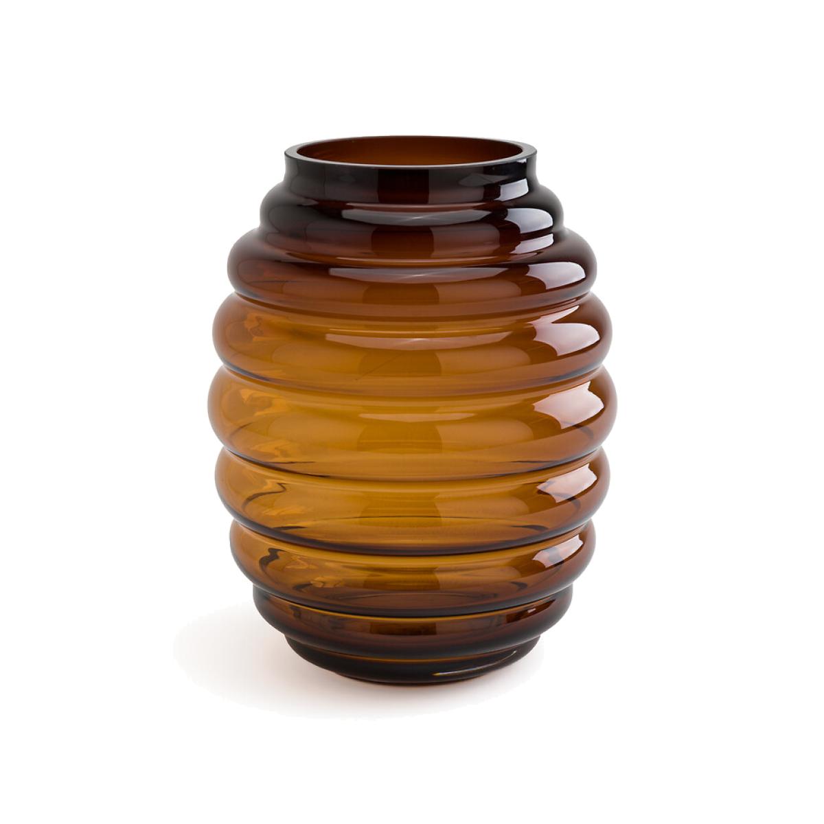 I love the textured glass on this vase - it adds visual interest without overwhelming a space. Its warm amber tone makes it versatile, suiting both modern and more eclectic interiors. It works particularly well as a standalone statement piece on a console or mantel, but it also pairs beautifully with dried flowers or minimalist greenery for a simple, stylish display. For practical styling, place it on surfaces with neutral or contrasting backgrounds to highlight its shape and colour, and consider layering with other textured or glazed pieces for a curated look. It’s the kind of vase that offers both form and function, making it a flexible addition to a variety of spaces.