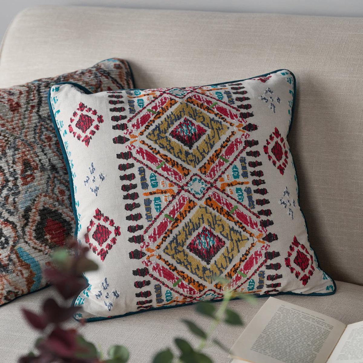 I love this Soho cushion in spice for adding a pop of colour and pattern to both contemporary and eclectic interiors. Its vibrant, tribal-inspired design works well layered on neutral sofas or armchairs to bring warmth and visual interest. For practical styling, try mixing it with other textured cushions in muted tones for a balanced look, or pair it with rich, earthy tones in natural fabrics for a cosy feel. Its size is versatile, making it ideal for creating a relaxed, inviting vibe in living rooms or bedrooms. Overall, it’s a striking accessory that can elevate simple spaces while offering comfort and personality.