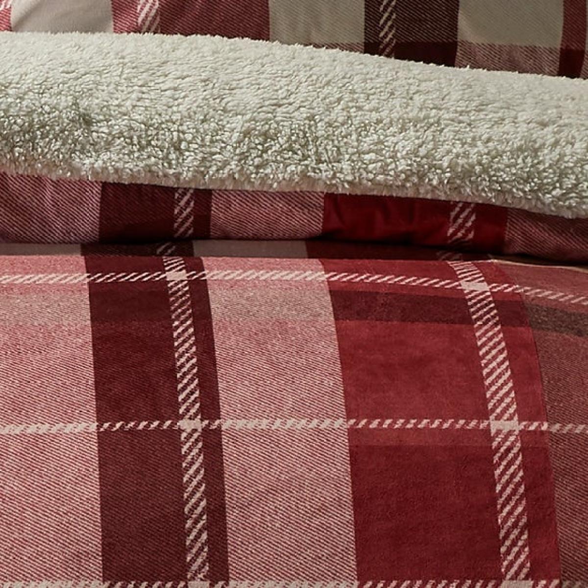 * Extra toasty faux sherpa fleece Composition * Cosy Check Design * Includes standard pillowcase(s) * Popper closure * Machine washable Immerse yourself in a world of luxurious comfort with our Mulford Check Duvet Cover Set. Made from extra toasty faux sherpa fleece, this set features a cozy check design that adds a touch of warmth to your bedroom. The plush front and velvety soft sherpa reverse create a haven of unparalleled snugness. Available in a passionate shade of red, this set includes standard pillowcases and a popper closure for easy use. Machine washable for convenience, it transforms each night into a dreamy escape to ultimate relaxation. This collection is verified by OEKO-TEX® and independently tested for harmful substances as well as manufactured using sustainable processes under socially responsible working conditions.