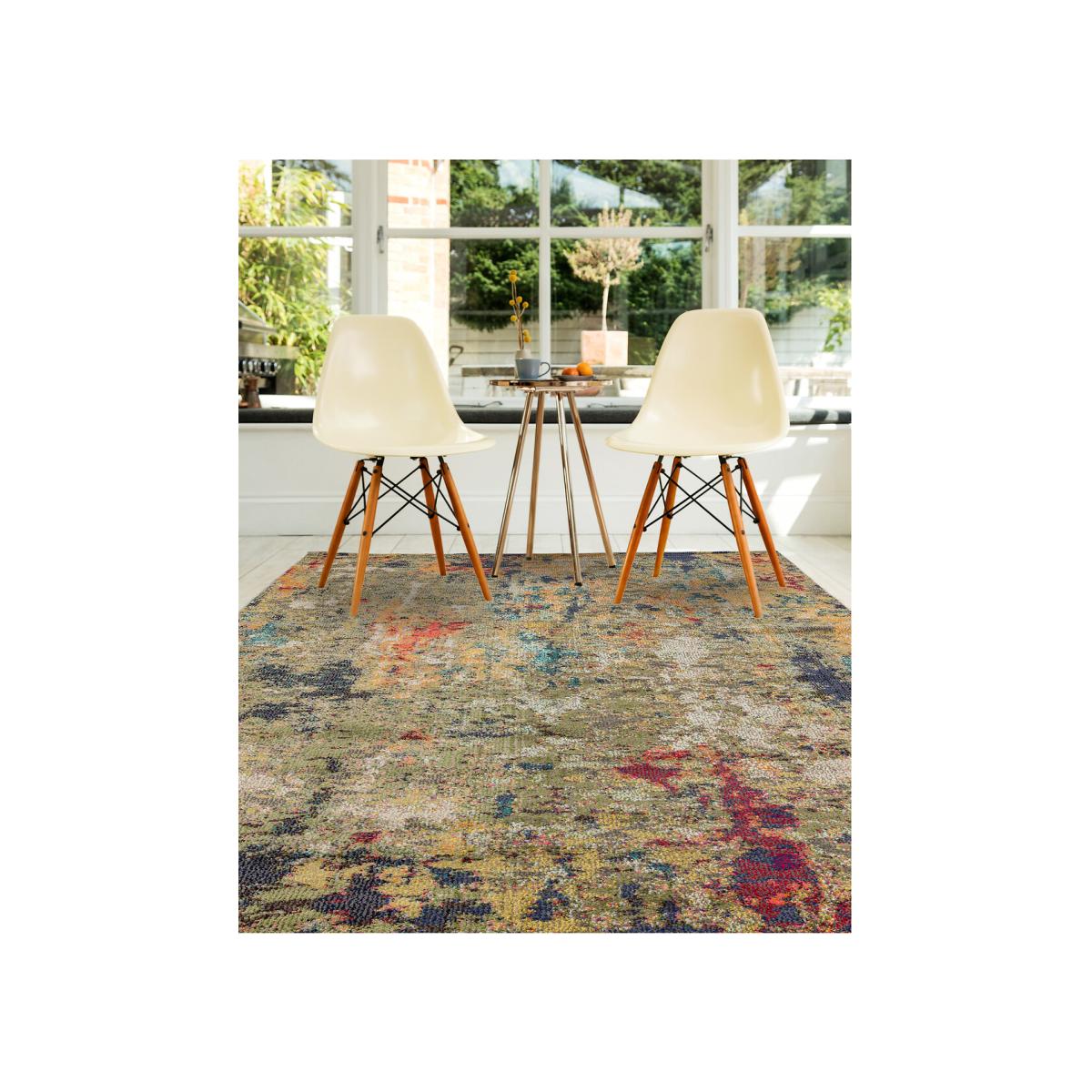 I love this multi-colour abstract rug for its vibrant, energetic vibe that can instantly lift a space. It's particularly versatile in contemporary or eclectic interiors where it can serve as a statement piece. The mix of colours adds visual interest without overwhelming, making it an ideal foundation for pairing with both neutral and bold furniture. For styling tips, consider keeping accessories and larger pieces understated to let the rug take centre stage, or introduce coordinating colours from the rug into cushions or artwork for a cohesive look. It works well under a dining table or in a living area to add warmth and texture, but be mindful of colour clashes-sticking to simple, clean lines around the rug will create a balanced aesthetic.