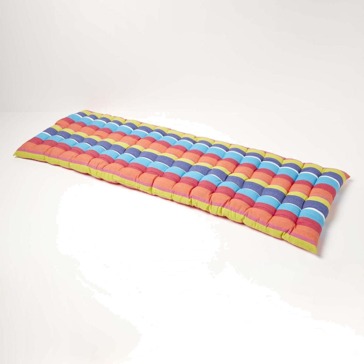 Super soft and supportive outdoor and dining bench cushions that will add a burst of colour to your home and garden. Available in 2 and 3 seater bench sizes this exclusive range includes plain and patterned designs including striped, tartan and polka dot styles. Homescapes bench seat cushions are woven from durable 100 cotton and generously filled to provide lasting comfort. Perfect to use as a bench cushion or back rest, these multi-functional cushions can be used outdoors on garden furniture or as garden floor cushions as well as indoors in bay window seats and on dining benches. One of the UKs largest collections of outdoor cushions, matching chair cushions are also available, sold individually or in sets of 4 and 6 you can co-ordinate or mix and match chair and bench cushions to compliment any interior or garden style. A quick and affordable way to transform furniture, bench pads and seat cushions are great for adding colour and comfort to your garden and dining furniture. Each pad features a quilted tufted effect, can be machine washed at home and has been expertly crafted for durability and lasting colour. Cushion pads are not waterproof, do not leave outside when not in use.