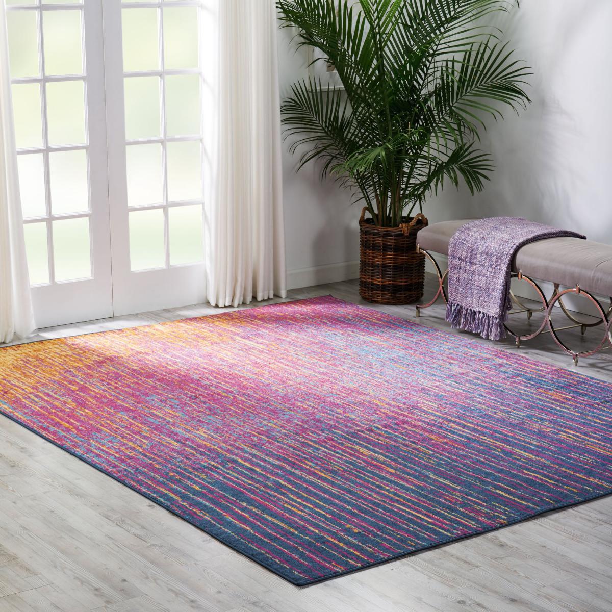 Imaginative flowers in lush and saturated pigments grace this Passion collection of rugs with a beautifully colourful presence. The artful palette mixes fuchsia, petal pink, apricot and lemon on a patinated background of denim blues. These fantastic florals and geometric designs combines hints of Persian antiquity in a modern interpretation to create a stunning and versatile statement piece. Skillfully woven Polypropylene fibers on state-of-the-art power looms combines thick, comfortable pile with an easycare approach. Advanced overdye techniques create an exciting patina effect in shades of pink, blue, and orange. Made from high quality polypropylene, it has been master batch dyed for lasting colour fidelity, expertly woven to Nourison’s superior quality standards on proprietary powerlooms, and finished with a practical jute and latex backing. To ensure your rug lasts, gently vacuum on a weekly basis to remove surface dust and dirt. Do not pull any loose threads, cut carefully with scissors to remove. Occasionally rotate the rug to equalise wear and avoid prolonged exposure to direct sunlight. Clean spills immediately by blotting with a clean cloth. Do not rub. If stain persists, seek professional cleaning. Please note, unfortunately we cannot deliver this item to the Channel Islands. Don’t forget to buy our anti-slip mat[here](http://www. dunelm.