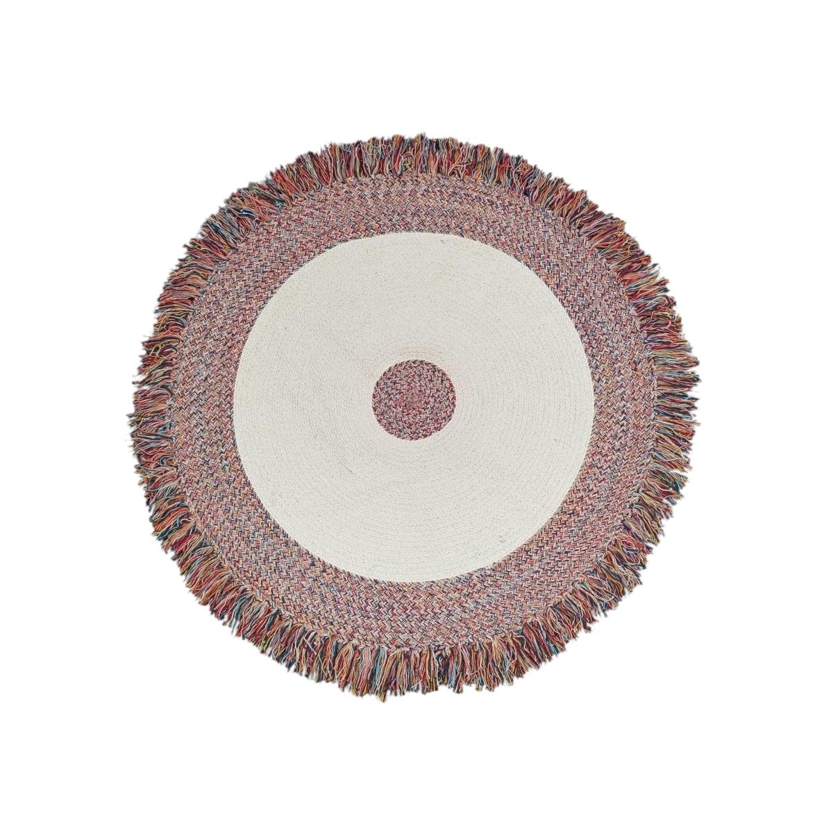 Add comfort to your space with this Multi Fringe Round Braided Rug. Round in shape, it features a multicoloured design with a fringe border to add a sophisticated layer of visual interest. Simple yet functional, it's perfect for a touch of elegance.