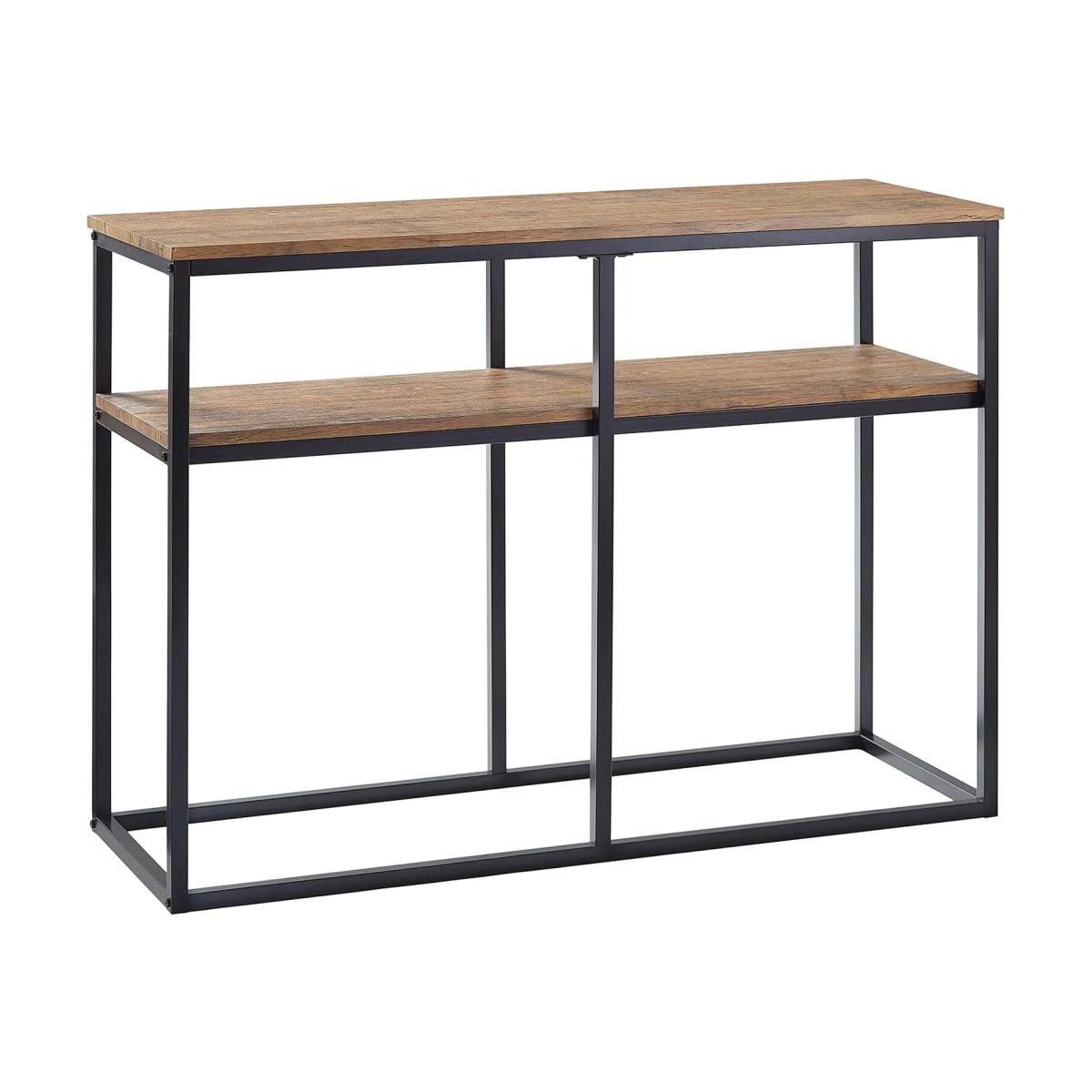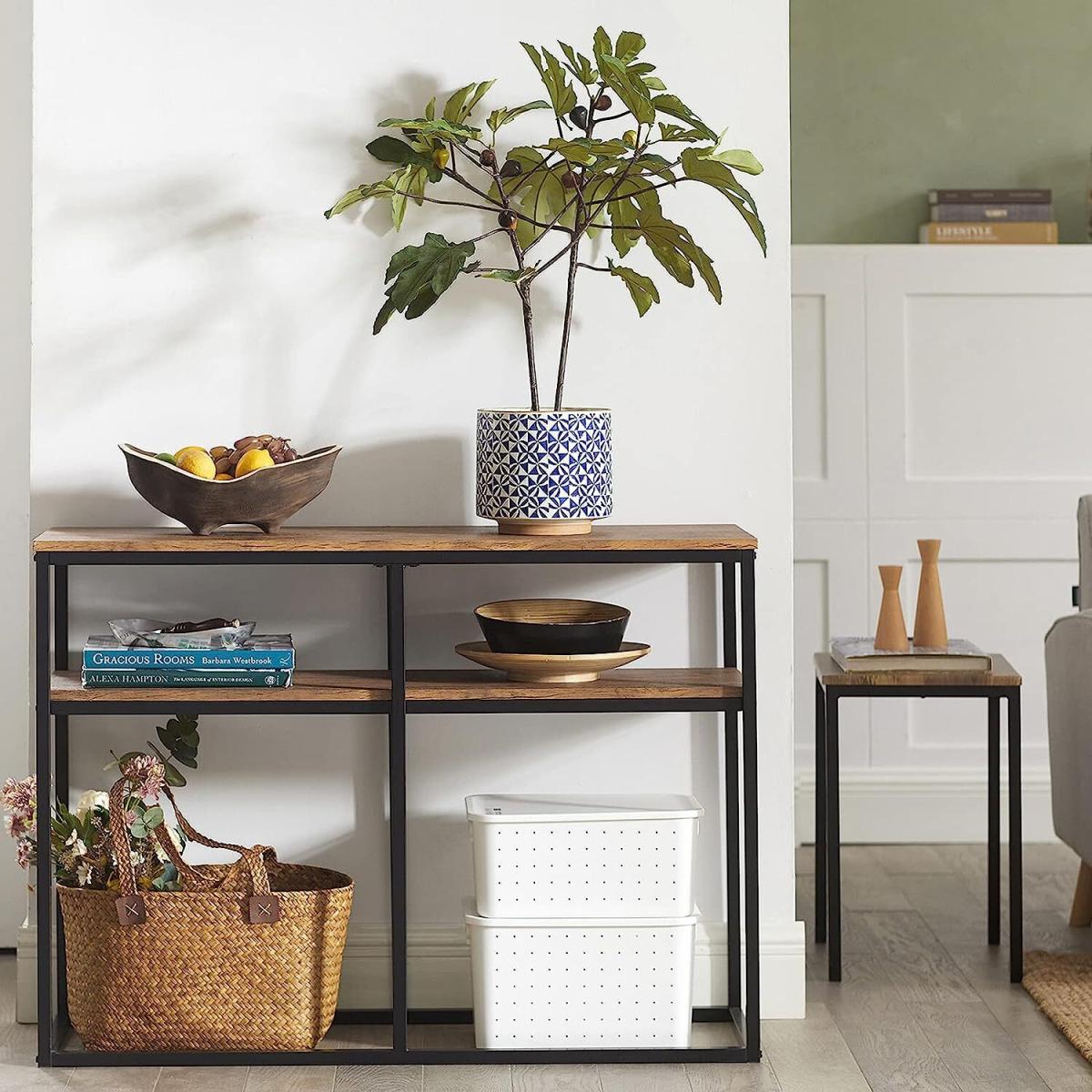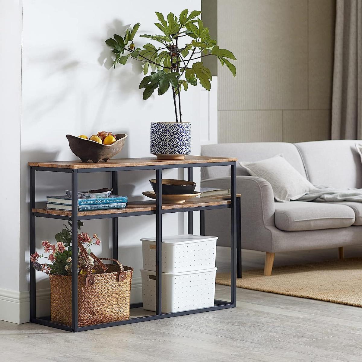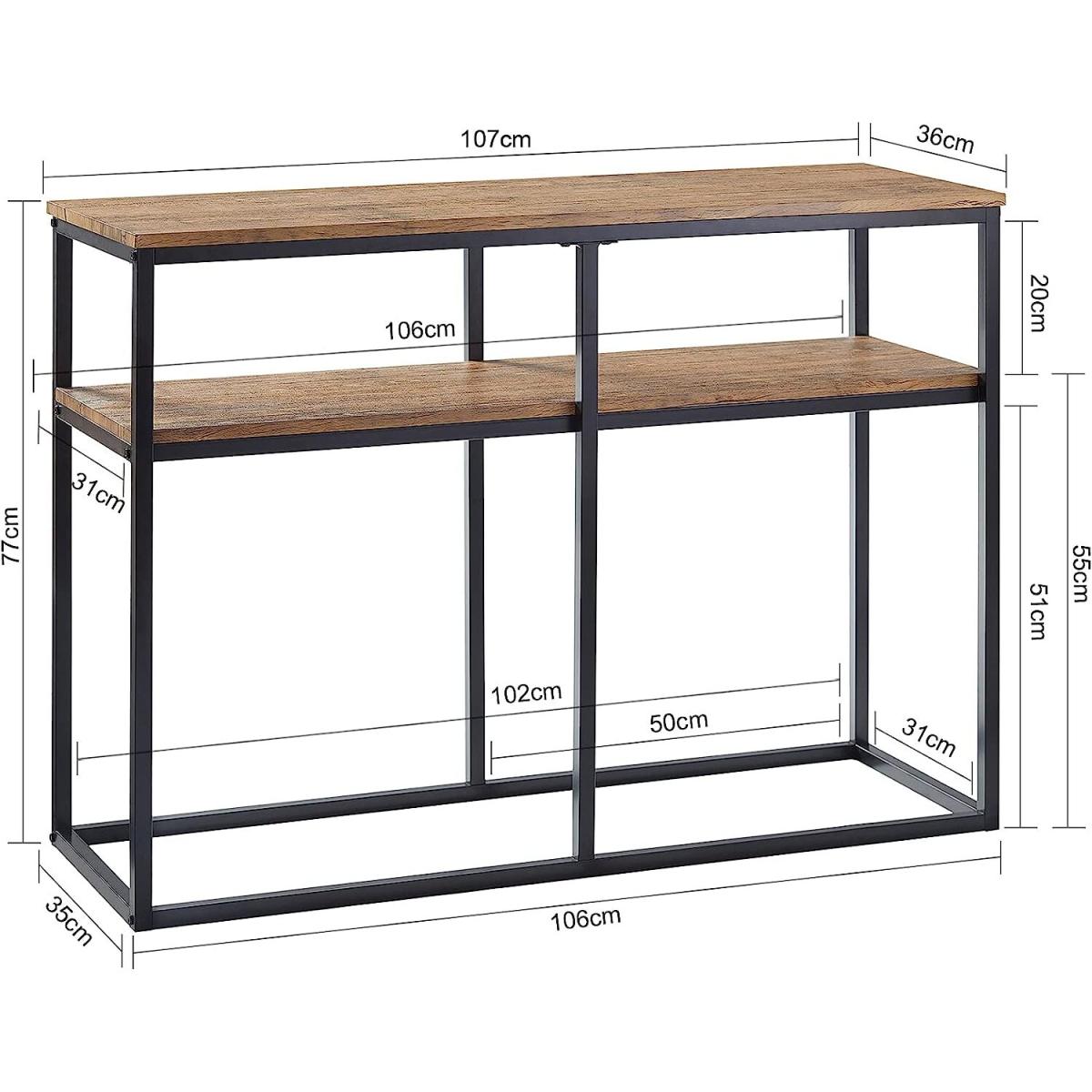 A diverse and contemporary product, would be suitable for a variety of locations, like hallway, living room, dining room and office.2 shelves provide plenty of storage and display space for you. The space beneath the shelf offer additional large storage and display space for you. Made of high quality MDF with wooden effect and black powder coated steel frame. Stable and durable. It is very multi-functional due to the slender and clean design yet practical feature. The simple lines and subtle industrial style will give a contemporary twist to the focal point of any living room.