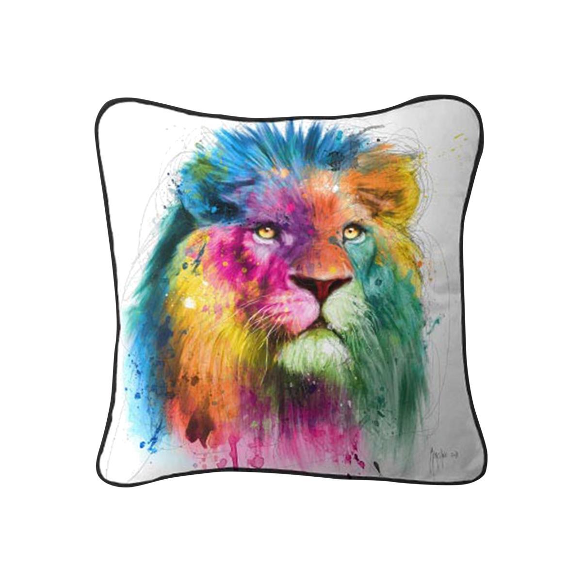 With bold pops of colour, the captivating Multi Lion Cushion demands attention. Ideal for those who like to stand out from the crowd. Why you'll love it. A majestic colorful statement detail that fits any interior. Luxe duck feathers filling for your comfort. Made in the UK. What you need to know. High quality digital print. Pipped edges. Dimensions. Height: 55cm (22 in). Width: 55cm (22 in).