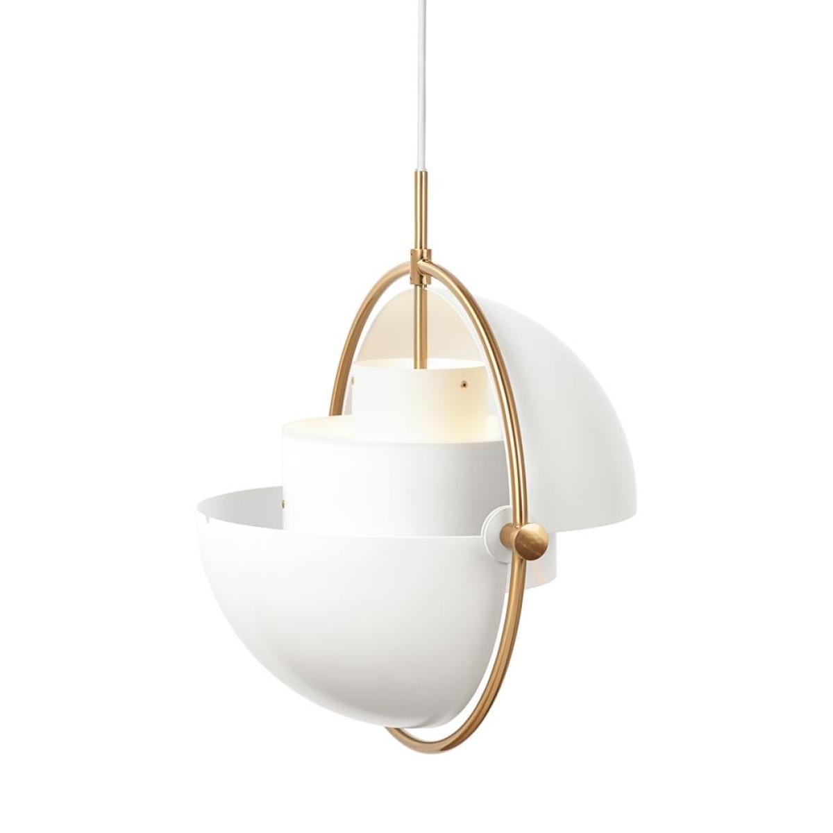 The Multi-Lite ceiling lamp from Gubi was designed in 1972 by Louis Weisdorf. The characteristic shape is typical for classic Danish design and the lamp can be, as the name suggests, used in several different ways. The lamp is made of two separate shades that can be rotated to create different combinations. This way, the light can be directly up, down or asymmetrically sideways. The lamp is available in different colors and all shades are white on the inside.