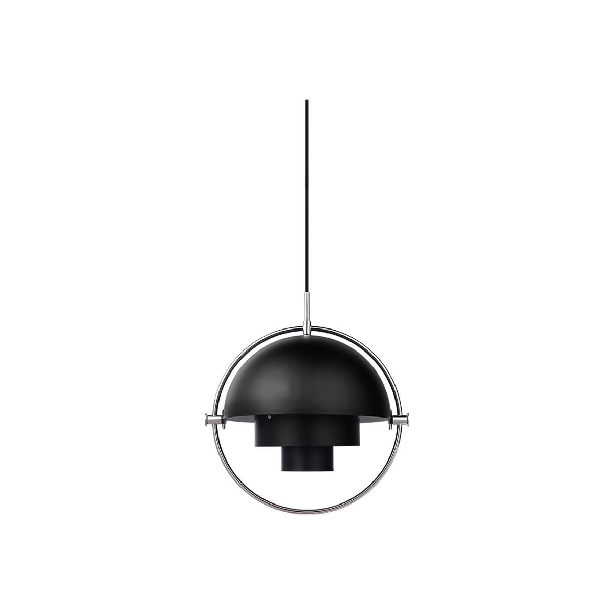This iconic Multi-Lite Pendant in black and chrome is a 1972 design by Louis Weisdorf, which encompasses the 'golden era' of Danish design, featuring two adaptable, characterful shades that are sure to become the focal point of any room. Crafted from chrome with a black powder-coated shade, the Multi-Lite Pendant light is suspended on a chrome ring, with two rotating shades containing cylindrical shapes. Simply adjusting the shades transforms the pendant and personalises the light display to direct it upwards, downwards or even in asymmetric beams. First designed in 1972, the Multi-Lite Pendant in black and chrome showcases Weisdorf's movement away from his traditional design style to pursue a more diverse aesthetic. Requires: 1 x Max 57W E27 halogen bulb View our entire range of Multi-Lite Pendants by Louis Weisdorf