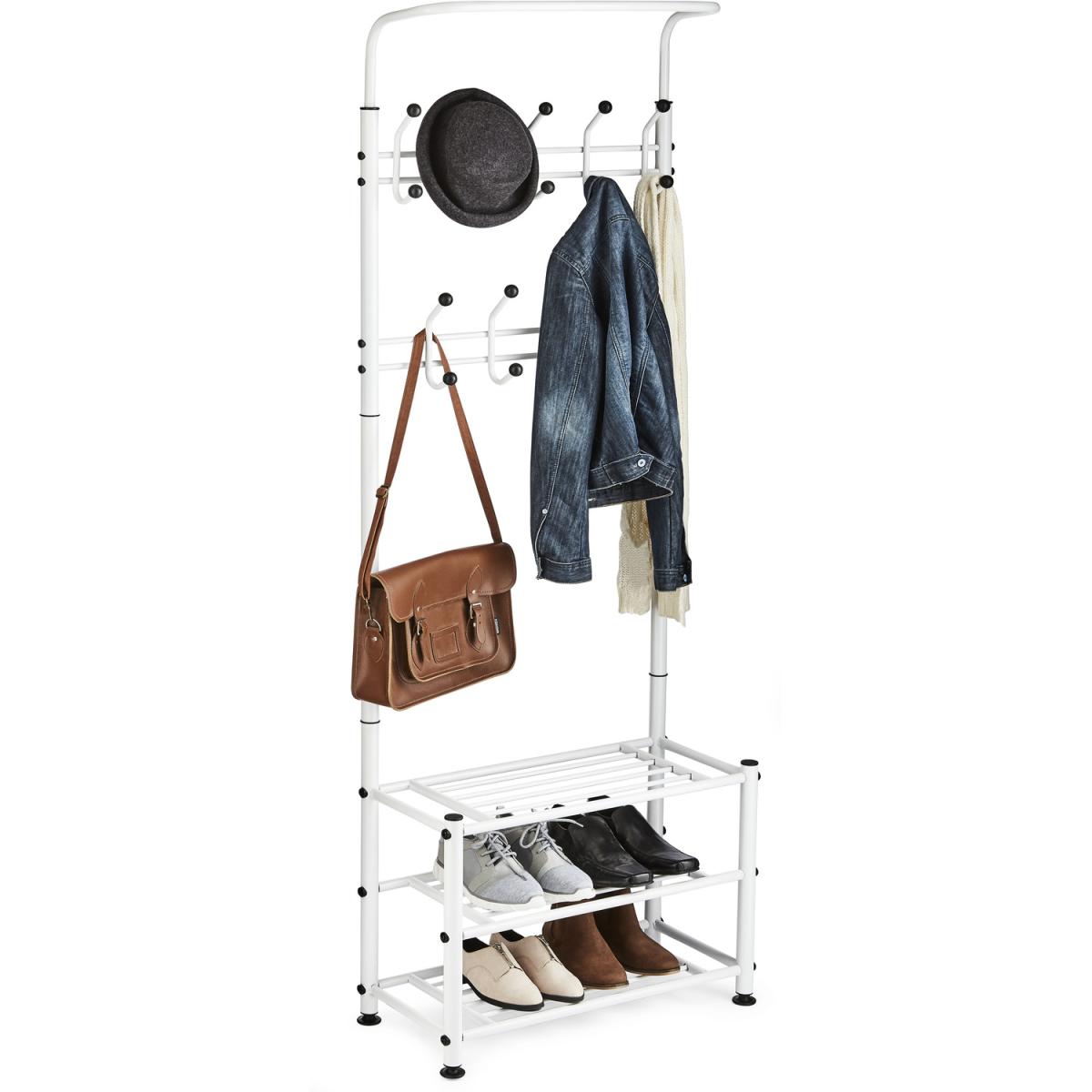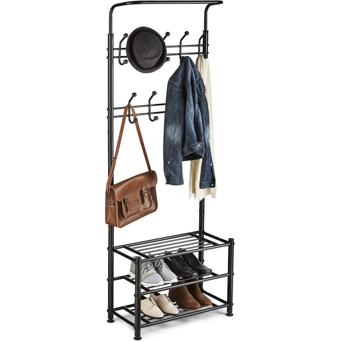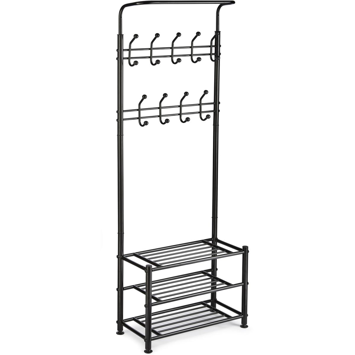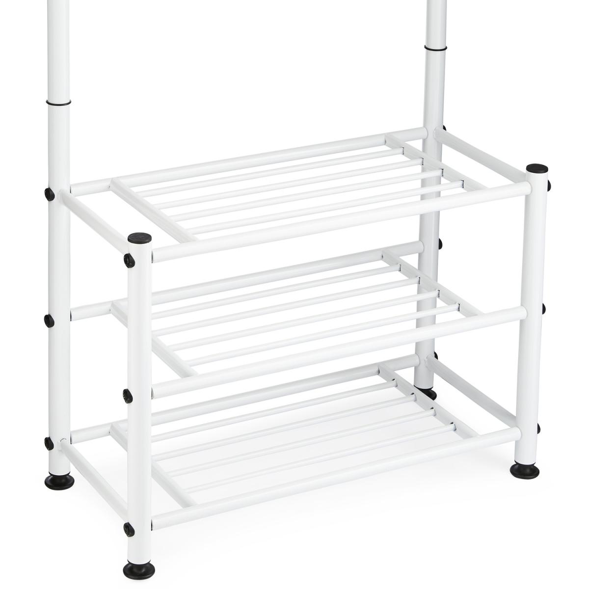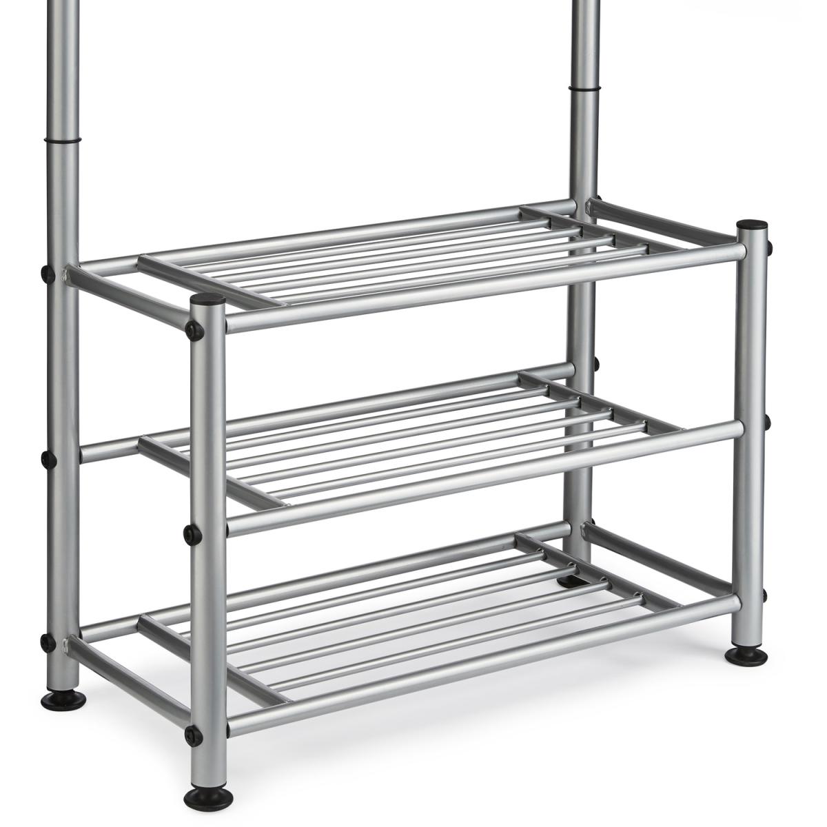 A great multi-functional coat racks and stand with shoe rack. If you need extra hanging space and shoe storage then this rack is a great storage solution. Will hold up to 18 garments, coats, jackets, scarves. This product is self-assembly.