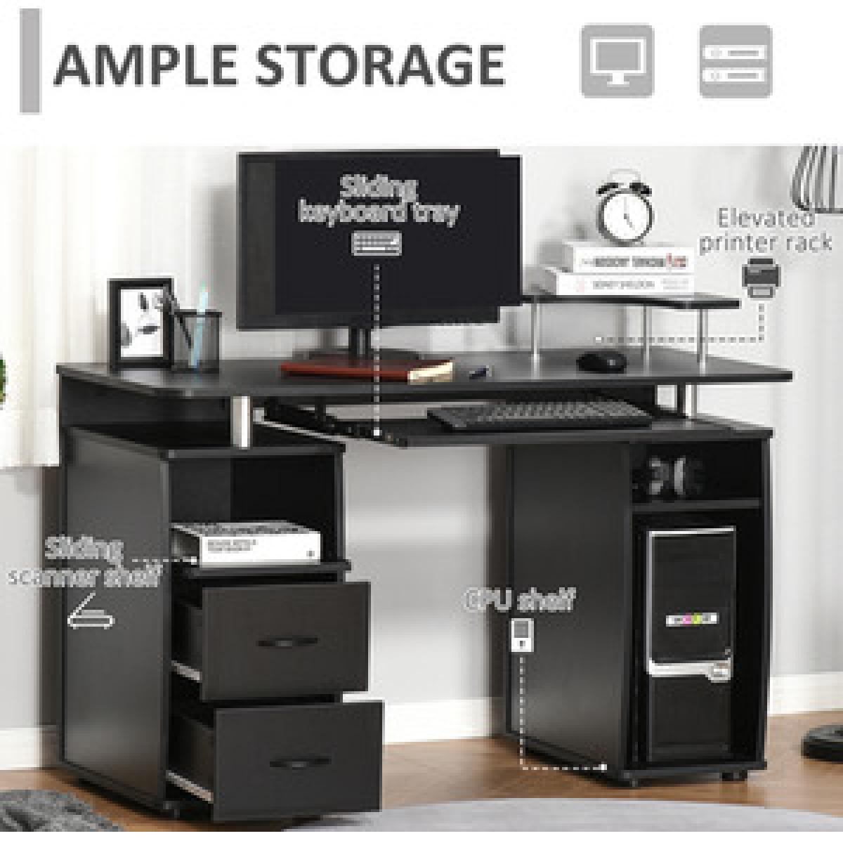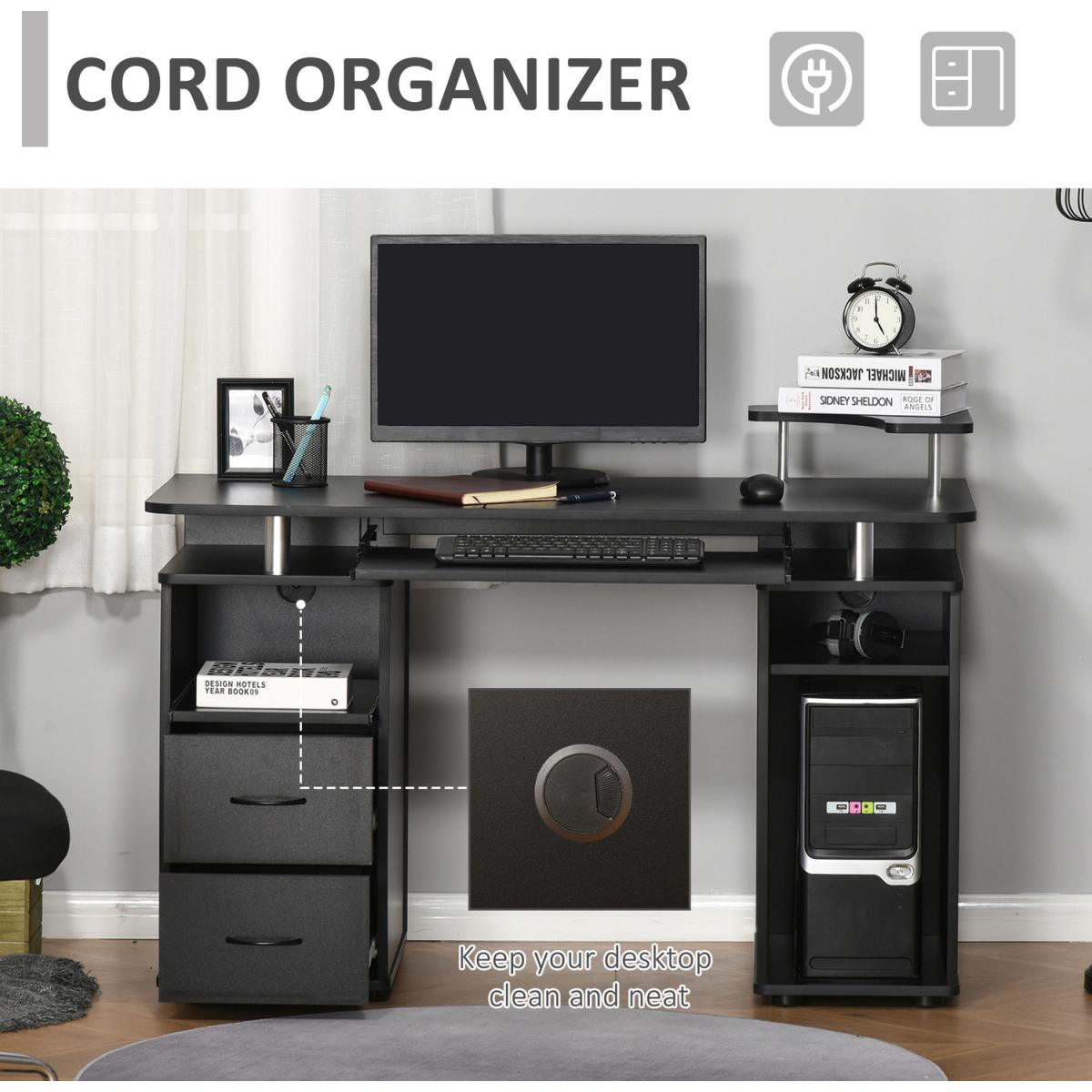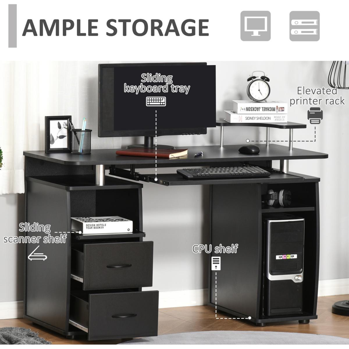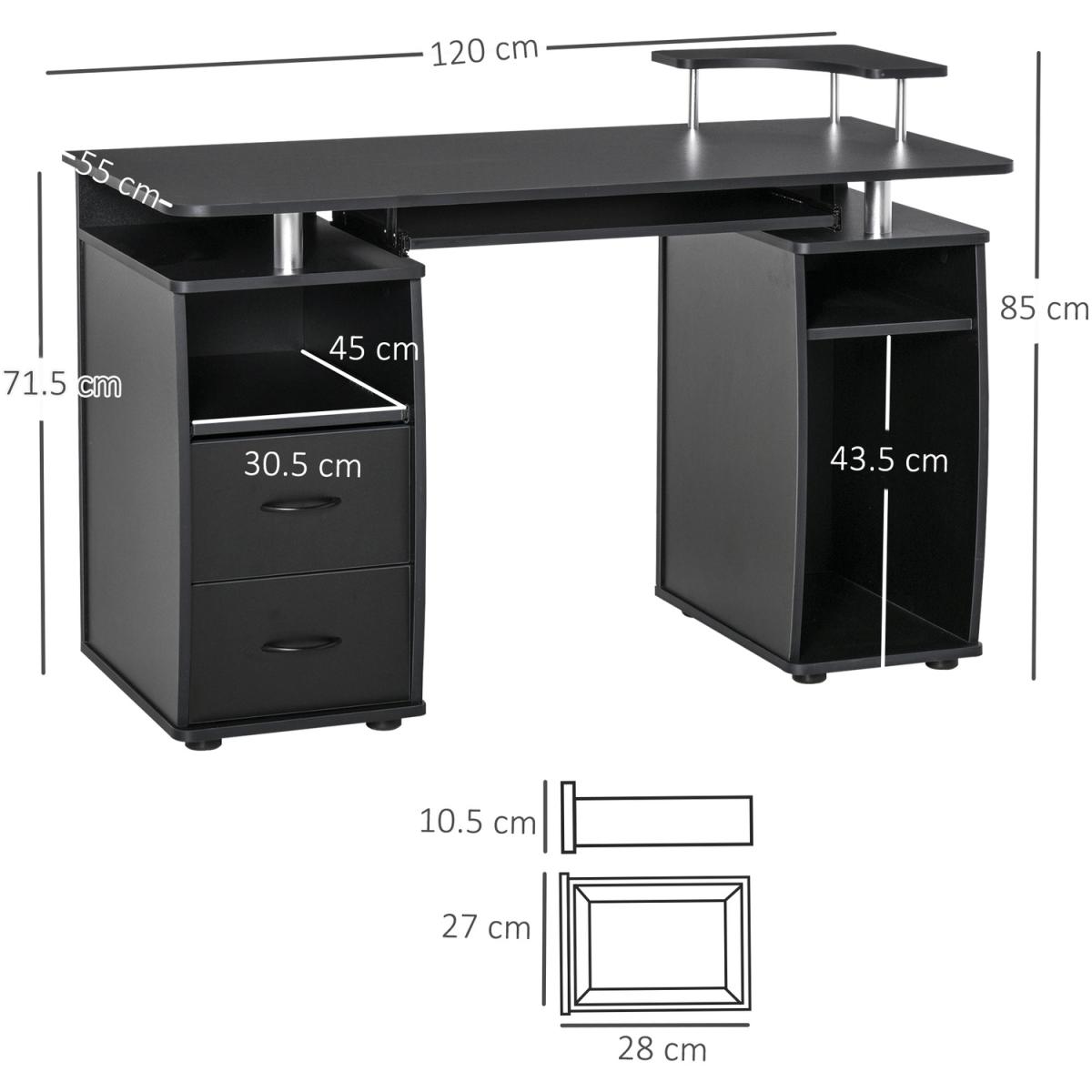 For when an ordinary desk just won't do, then bring this HOMCOM number into the equation. Blending the beautiful with the functional, this piece is made to stand in all different spaces - the bedroom, study, attic and beyond. It features a large tabletop, elevated monitor shelf and keyboard tray, giving you room to keep everything organised and room to work. There's a computer tower holder on the lower right and a two-drawer cabinet on the left, giving you even more room to keep everything together. It's finished with metal handles and feet on the bottom for balance and floor protection.