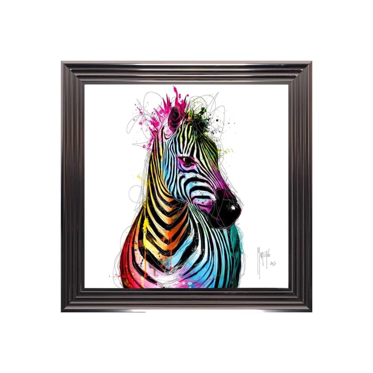 Multicoloured framed print of a zebra. By renowned artist Patrice Murciano. In a high quality bevelled metallic frame. Our Zebra wall art by Patrice Murciano is bold, edgy and will add a fabulous splash of colour to your home. Murciano is known for his vibrant pop art work in rainbow colours and his distinctive graffiti-inspired technique. Embellished with stunning liquid glass art, this piece is perfect for animal and art lovers alike. Made in the UK, this framed print under glass looks beautiful, especially when displayed with our other Patrice Murciano print, the Multi Tiger framed art. Some pieces of wall art can be fairly weighty, so make sure the wall you hang it on can support it. Dimensions. Width: 85m (33 in). Height: 85cm (33 in). Depth: 4cm (2 in). Weight: 8kg.