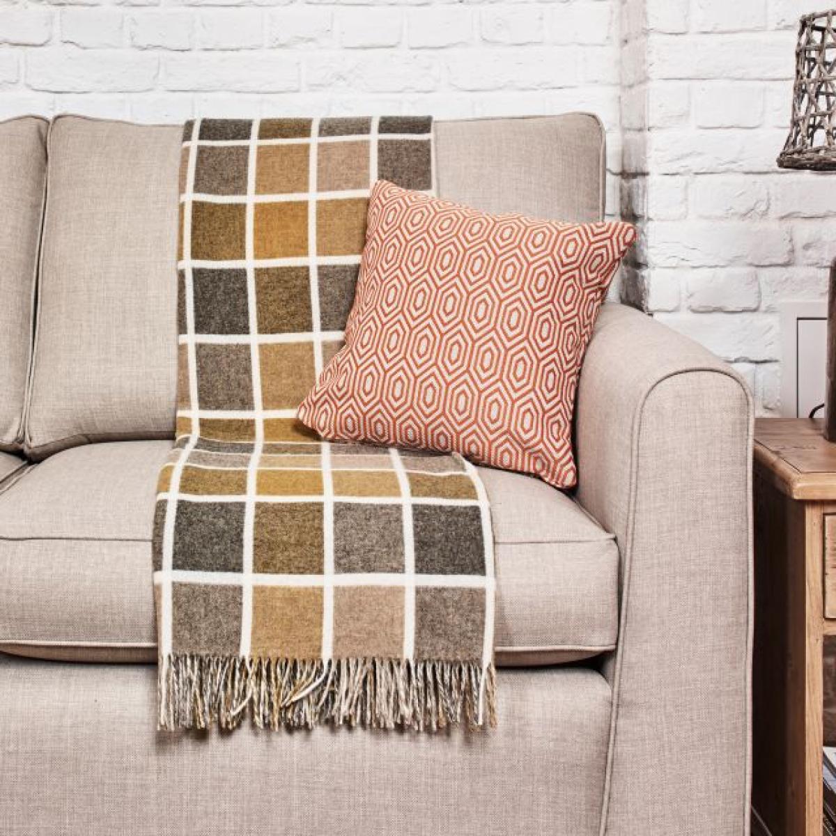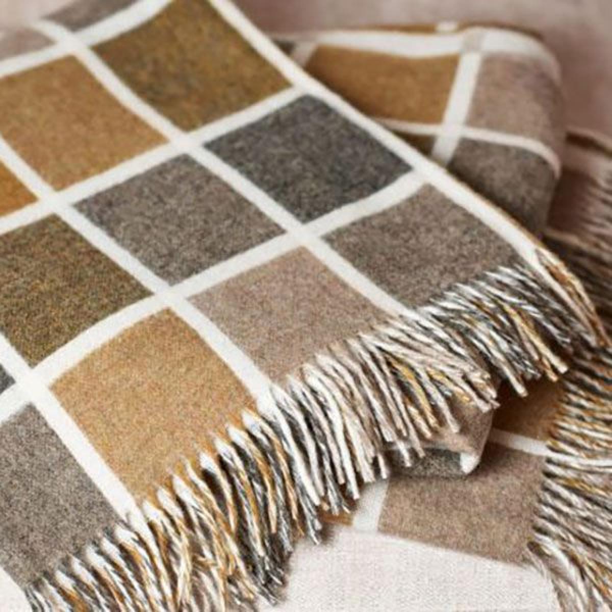 Made from 100% Lambs wool this reversible throw consists of two contemporary designs. With the option of a multiblock print full of boldly coloured squares on one side or on the reverse a more muted windowpane effect. Length 185cm x Width 140cm.