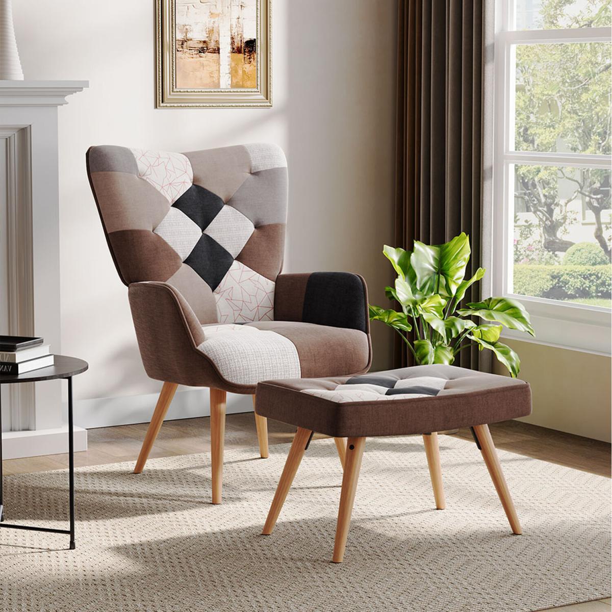 This armchair has a distinctive design with a mix of coloured blocks and various textured patterns, creating a unique visual effect. Treated with a special fabric technique, the surface achieves a three-dimensional appearance that adds depth and character. The matching footstool shares this design, creating a cohesive and attractive look for your space. The raised grid effect helps to keep you cool, while the soft terry cloth enhances seating comfort. Built with a wood and metal frame, the armchair is stable and can support up to 150 kg, ensuring long-lasting use. The high, broad backrest offers plenty of space to lean back, and the footstool provides a place to rest your feet, making it an ideal addition for relaxing at home in style.
