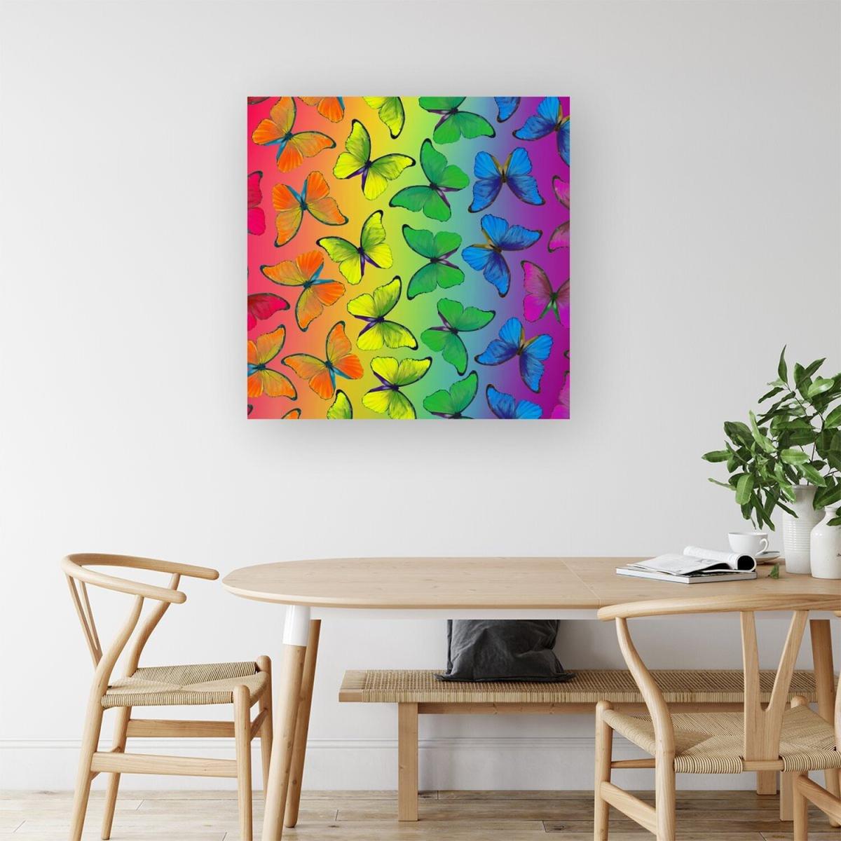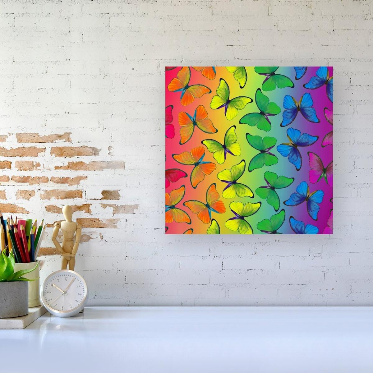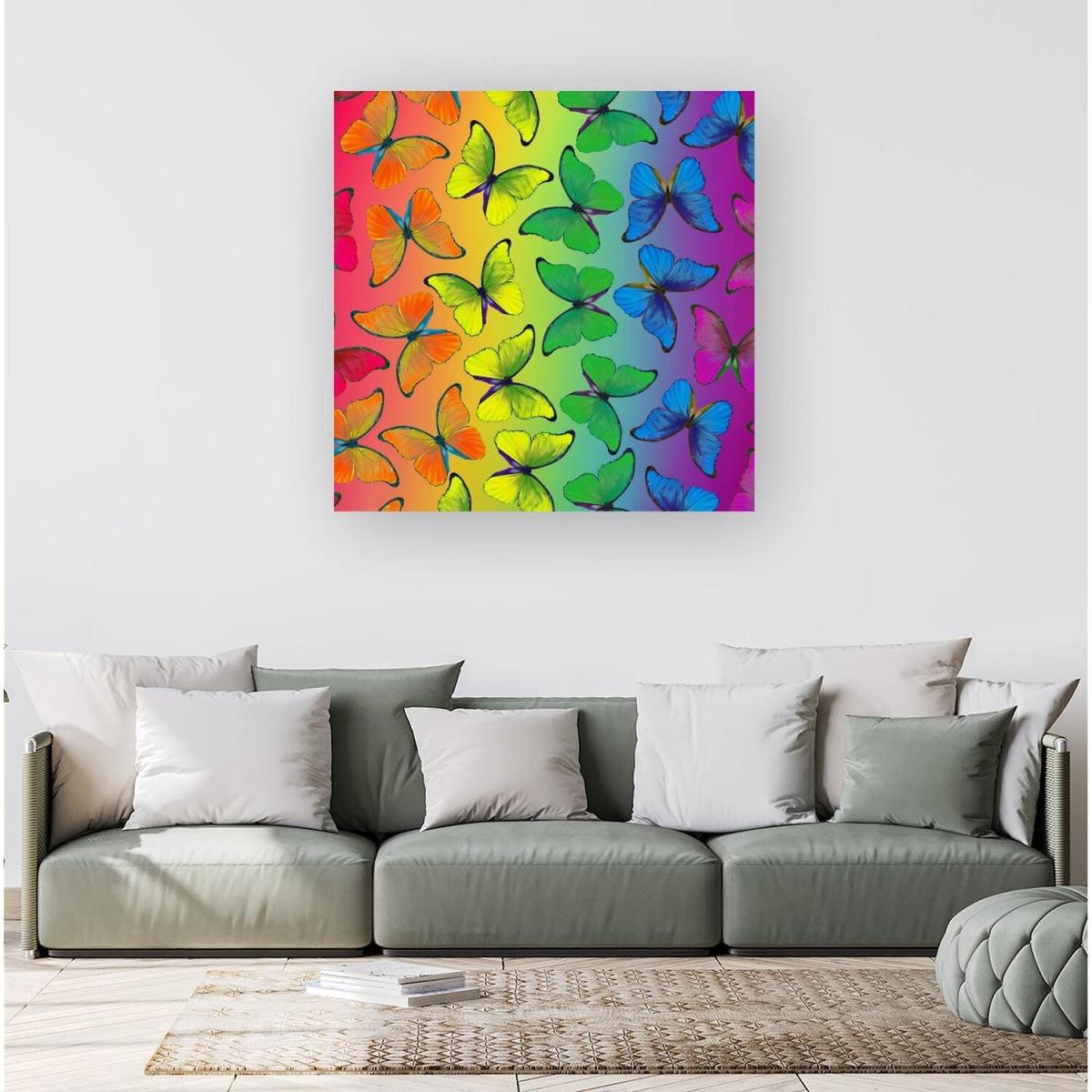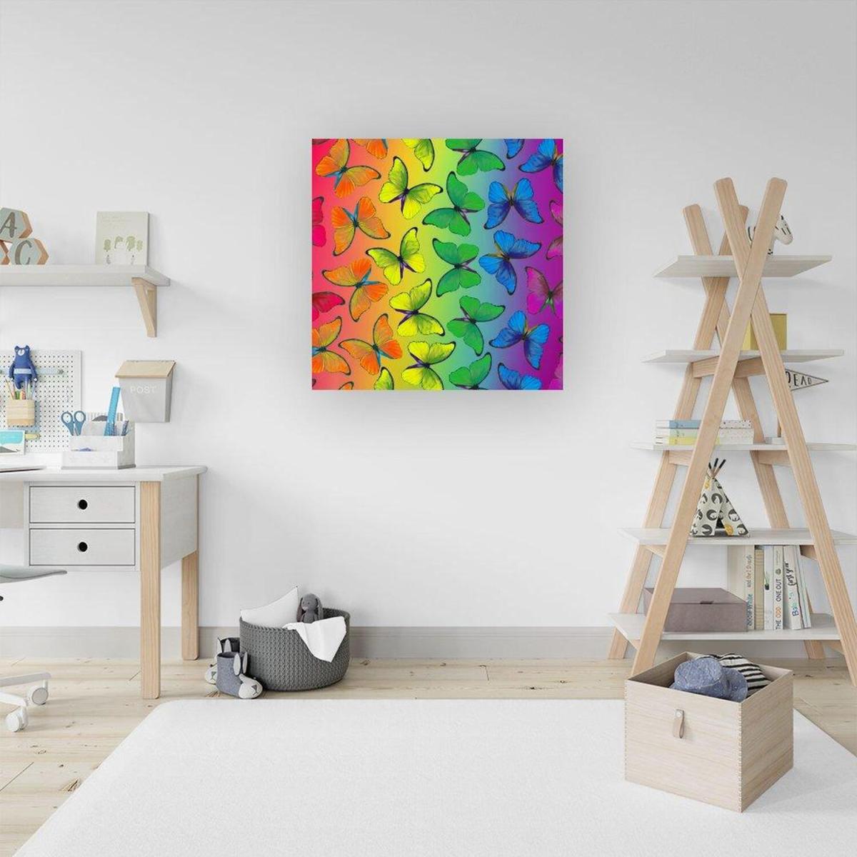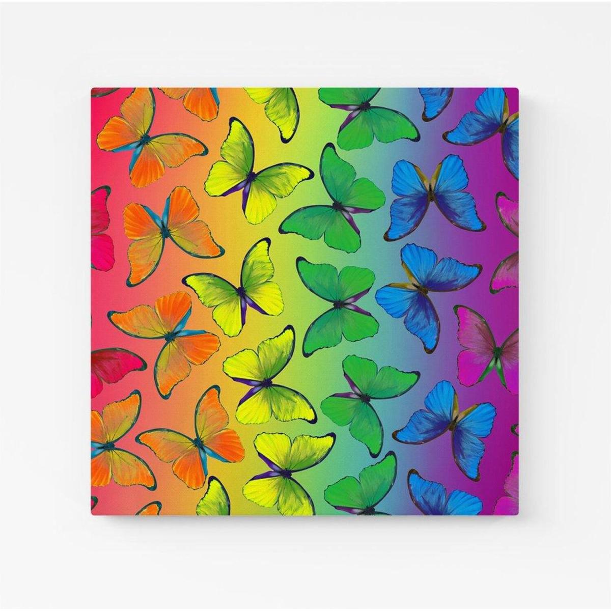 Multicoloured Butterfly Pattern Canvas Print - Green / Large
