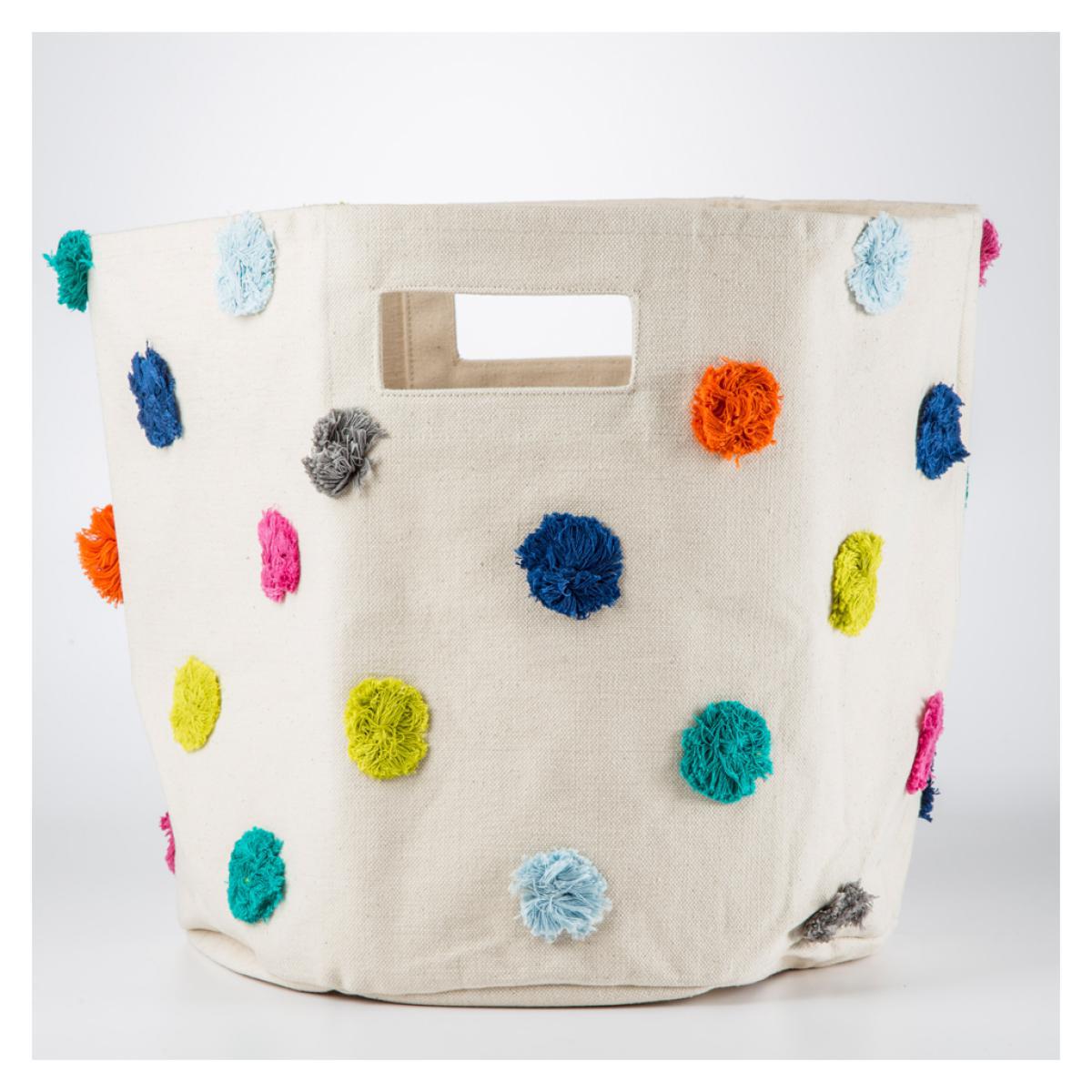Take one step closer to a clutter-free nursery or playroom with this medium-sized Multicoloured Pom Pom Basket by Petit Pehr. A storage solution your little one is sure to love, this vibrant basket was designed in Canada and expertly crafted by artisans in India for a quality finish. Playing host to an array of multicoloured hand sewn pom-poms, the natural hued basket features two handles for added practicality. Founded in 2011, Petit Pehr aspires to create sophisticated children’s décor that captures the beauty and simplicity of childhood. Playful and fun, its creations find the perfect balance between classic and modern.