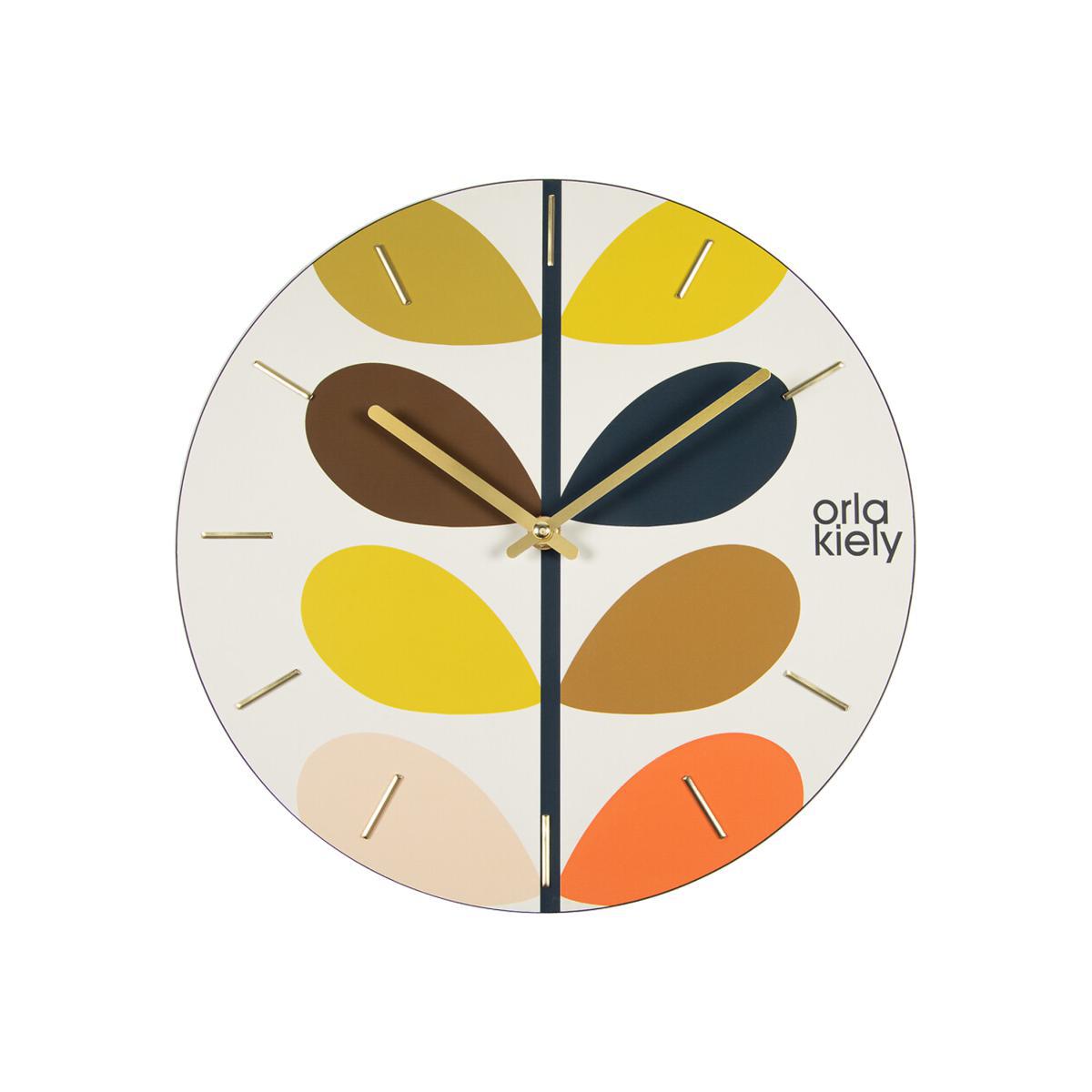 Orla Kiely frameless stem wall clock. The wall clock has a frameless base design and features a printed paper dial with brushed gold hour and minute hands design. The clock comes in official Orla Kiely packaging. This product will be dispatched by one of our trusted suppliers. You’ll be contacted by their selected courier about your delivery.