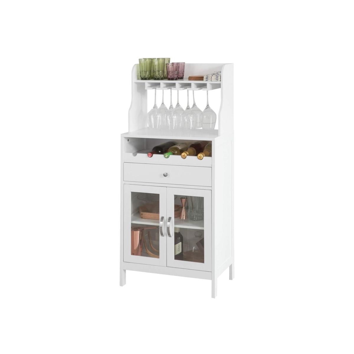 Solid and simple design sideboard is ideal for your kitchen or dining room you need extra storage space for utensils. It is very practical and handy for your kitchen and home, space-saving as well!There are 4 rows on the top for hanging wine glasses. The wine rack beneath the shelf can hold 5 bottles. The drawer and cabinet with 2 doors offer ample storage space for you. Made of high quality MDF in white lacquer. With this furniture, your home would be more stylish and spacious.