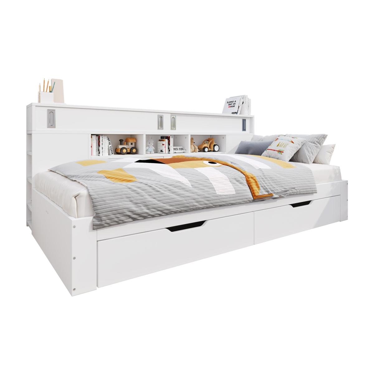 Two large-capacity drawers at the bottom conveniently store bedding, clothing, and other daily necessities. The drawers slide smoothly, allowing for easy and quiet access. a bed for multiple uses.Sliding door storage cabinets and open mesh shelves on the wall provide both privacy and storage display. Everyday items, books, and decorative items can all be neatly arranged, making efficient use of space. The side shelves can be adjusted up or down by 3.2 cm to accommodate different height requirements. The flexible tiered design allows for more organized storage. The mattress features a built in structure for stability and stability. The built-in bed frame prevents the mattress from sliding,enhancing sleep safety and comfort. Frequent mattress adjustments are unnecessary, saving time and effort. Combining both relaxation and storage functions, this bed is suitable for a variety of bedroom areas.it can be used as an everyday sofa or as a single bed,making it an ideal It is particularly suitable for multifunctional space layouts such as small apartments, childrens rooms or guest rooms.