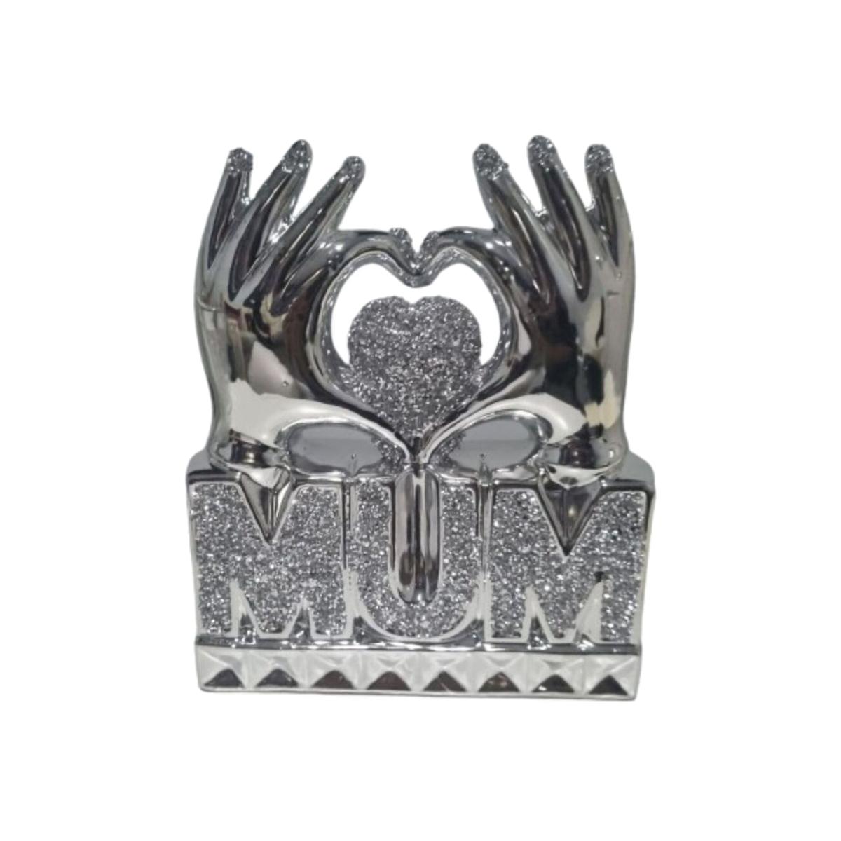 Mum Heart Hand Crushed Diamond Crystal Ornament - Silver