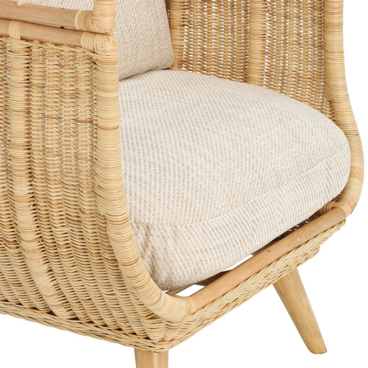 Muna Chair & Cushion with Natural Rattan & Jasper Fabric, Neutral | Barker & Stonehouse