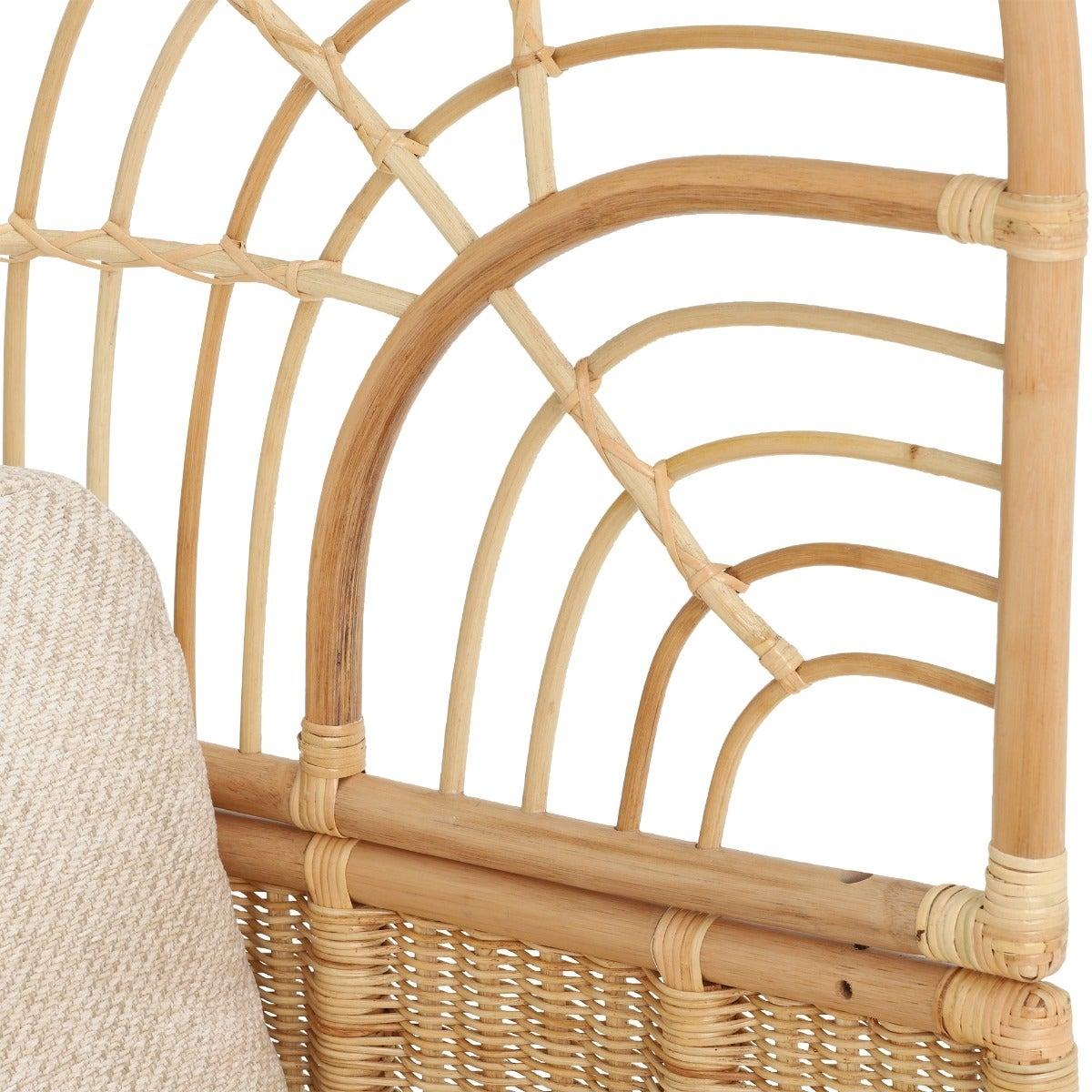 Design. After a busy day, feel nature surround you with the Muna Chair and unwind. Shaped from handmade sustainable rattan, this gorgeous piece will fit perfectly in with bohemian and natural décor, whether that’s in your garden, conservatory or living room!. The combination of the two deep foam-filled cushions and arching structure creates the perfect place to nestle with your favourite book. With appropriate care, this timeless beauty is set to last.