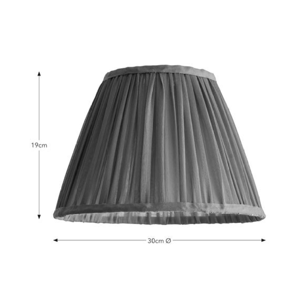 * Soft, Sheer Shade * Eye-Catching Tapered Shape * Made from Polyester * Available in Multiple Colourways Meet the Muna Chiffon Pleated Lamp Shade - a soft and sheer shade, tapered and complemented by pleats, that emits a lovely glow. Available in multiple colours, this lamp shade looks great on the ceiling or on a table or floor lamp.