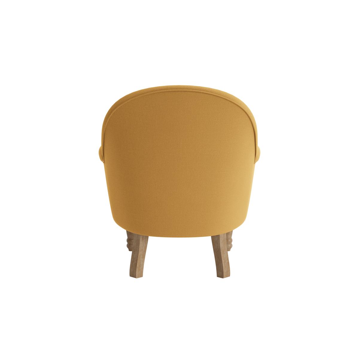 I really like this little chair, often called the Munchkin for its charming, rounded shape and cosy proportions. It works well in a variety of interiors-from traditional schemes with woodland-inspired decor to contemporary spaces looking for a soft, inviting accent. Its warm mustard colour adds a playful yet sophisticated touch, making it versatile for both living rooms and reading nooks. In terms of styling tips, pair it with lightweight throws or small side tables to maximise its cosy appeal, and consider placing it near larger neutral sofas to create an inviting, layered seating arrangement. Its sturdy wooden legs offer a nice contrast to softer fabrics, adding a touch of craftsmanship that can tie together eclectic or vintage-inspired interiors.