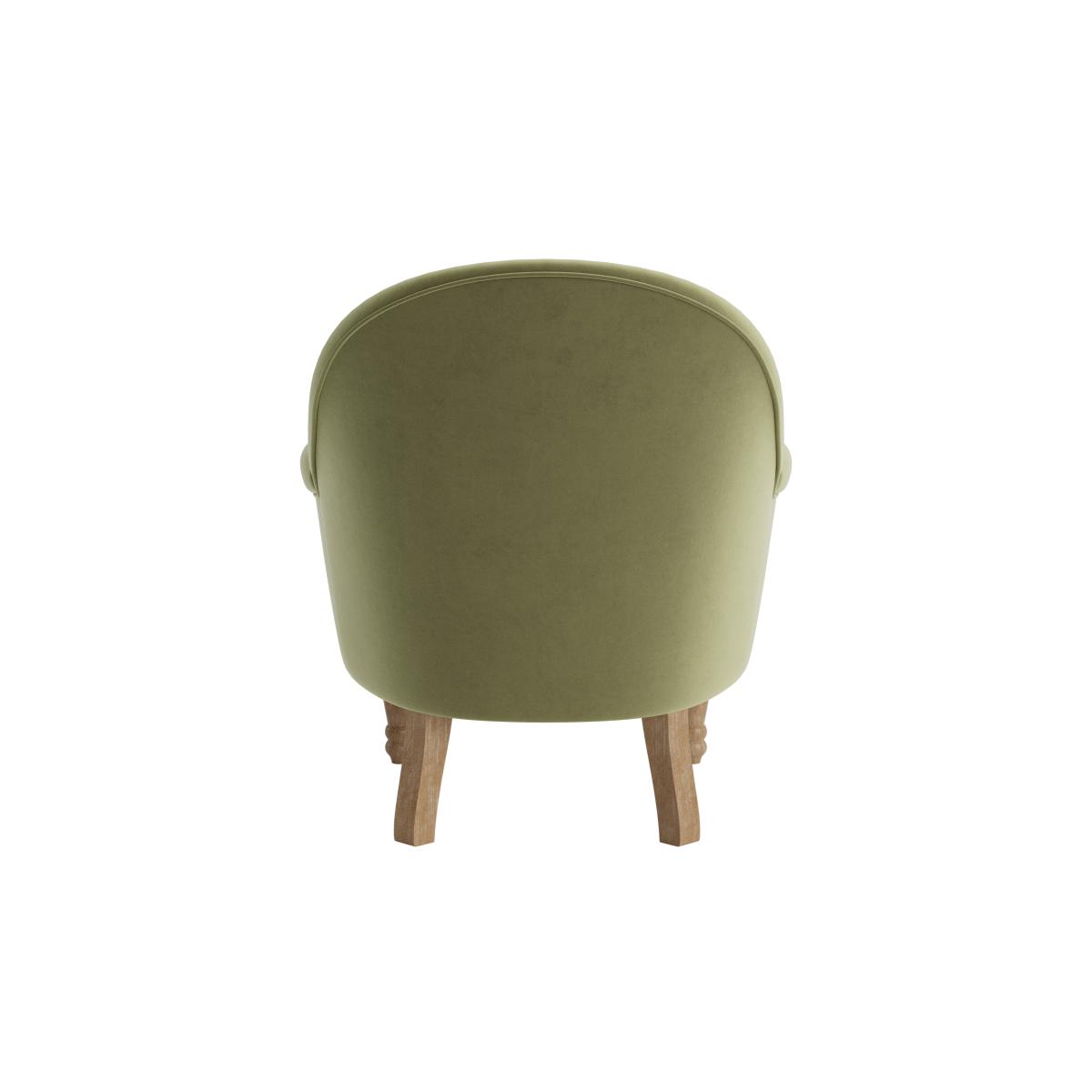 I love this little armchair because it combines a touch of vintage charm with modern versatility. Its soft, muted green upholstery makes it a great addition to both contemporary and eclectic interiors, adding colour without overpowering the space. The rounded back and cosy proportions make it ideal for creating inviting reading nooks, or as a statement piece in a corner of a living room or bedroom. Practical styling tips include pairing it with textured throws or a scatter cushion to add layers of colour and comfort. Its wooden legs bring warmth, so it works particularly well in spaces that feature natural materials or a neutral palette, acting as a stylish yet functional accent.