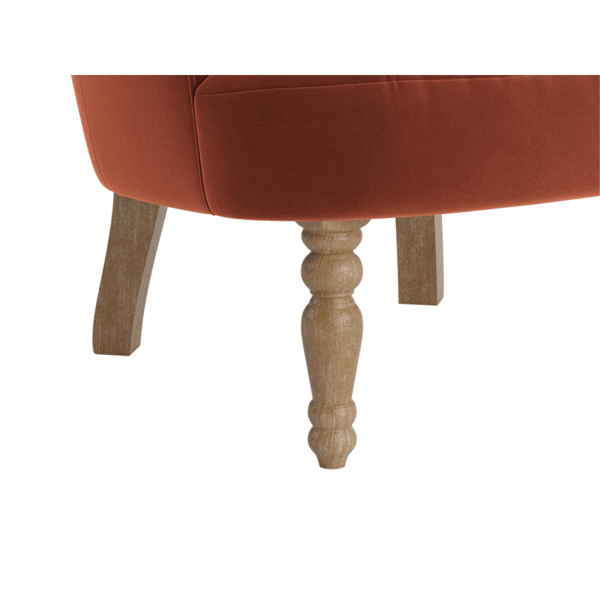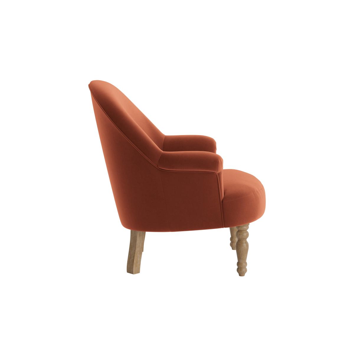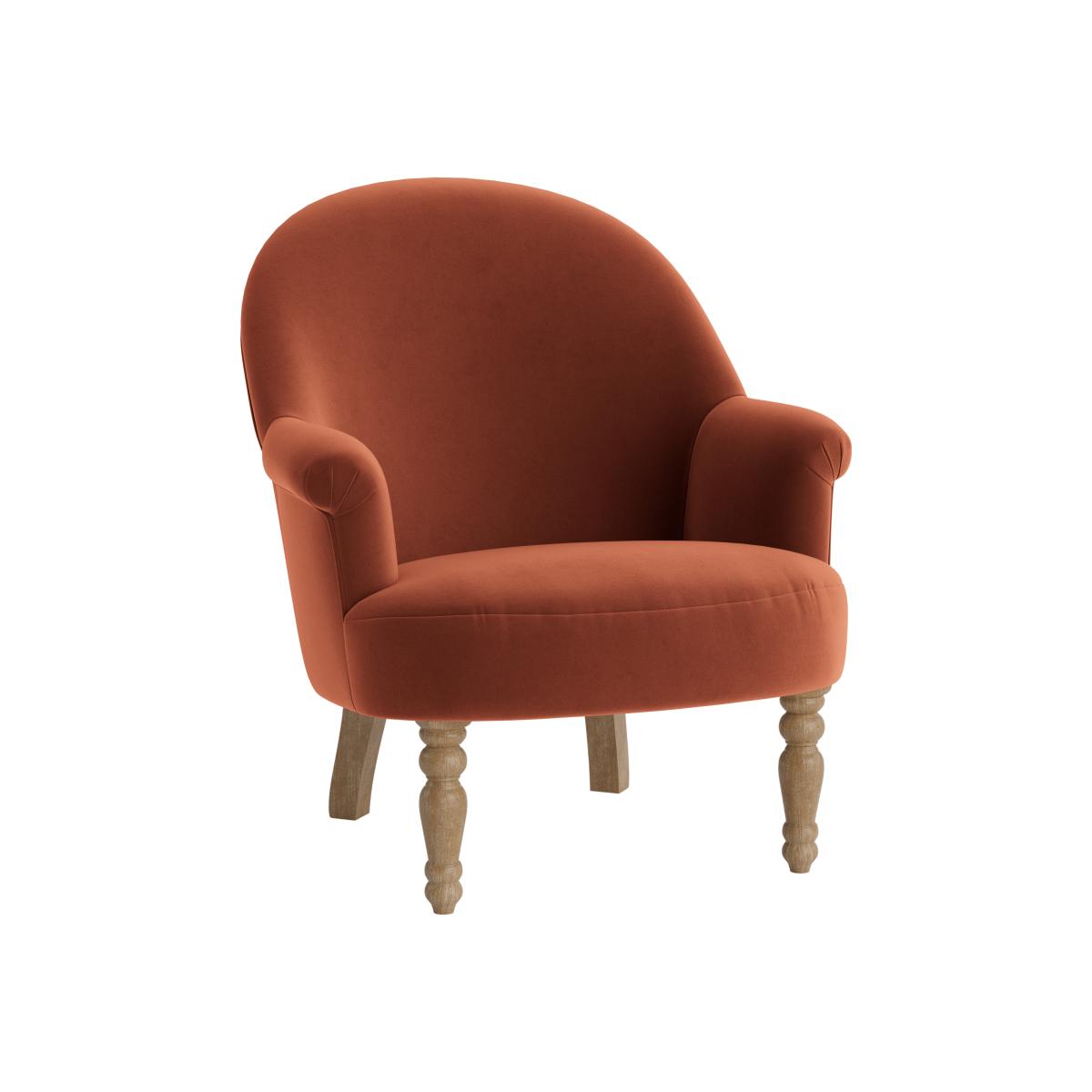 I love this little Munchkin chair for its cosy, inviting shape and warm terracotta hue, which makes it a versatile addition to both contemporary and eclectic interiors. Its rounded back and soft curves create an approachable look, perfect for adding a pop of colour and comfort to a lounge corner, bedroom, or even a stylish reading nook. Practical styling tips include pairing it with neutral or textured cushions to enhance its plush appeal or placing it near a small side table for functionality. It works well with a variety of décor styles-from mid-century modern to boho-so it's easy to adapt around your existing scheme. Keep the legs exposed to highlight its craftsmanship, or add a rug underneath for extra character and a more inviting space.